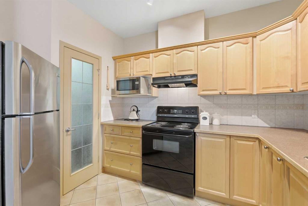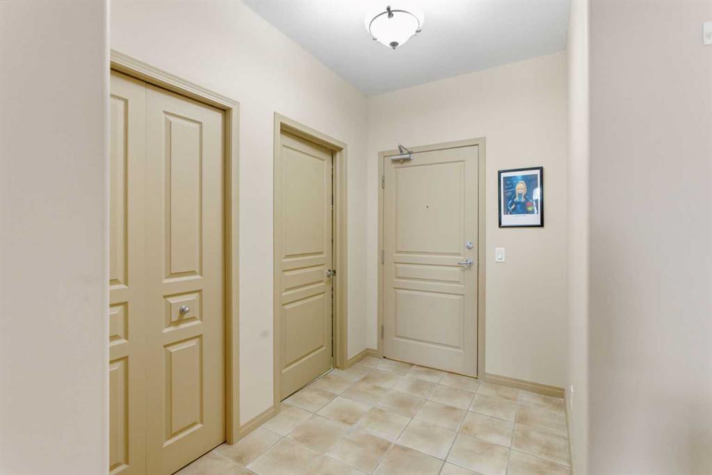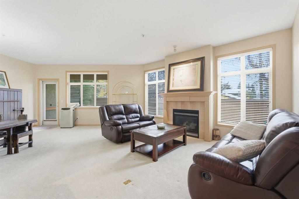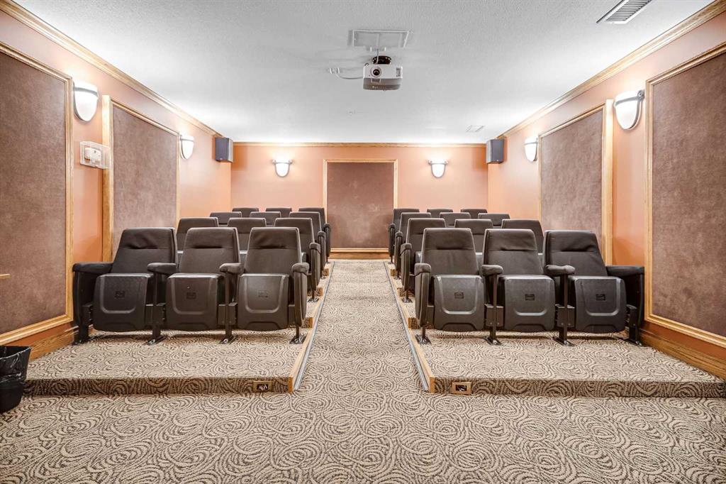 This sophisticated main-floor 2-bed, 2-bath residence features 9-ft ceilings, in-floor heat, and a gas fireplace that anchors the generous living area. The chef’s peninsula kitchen is refined with maple cabinetry, abundant prep space, and black & stainless-steel appliances and flows effortlessly to dining spaces and out to an east-facing private patio which is framed by a lush and mature green space, an ideal space to start your quiet morning over coffee. The king-sized principal suite includes a well-appointed ensuite bath; and a second bedroom and full bath provide flexibility for guests or a functional home office. Thoughtful conveniences include in-suite laundry, a full interior storage room, a separate secure parkade storage locker, and the comfort of a portable A/C unit for warm summer days. Two titled underground parking stalls complete the home. Residents enjoy elevated on-site amenities—an elegant lobby and lounges, theatre, fitness studio, and car wash bay—within a secured, intercom-access community moments from premier shopping, dining, transit, and major routes. A polished inner-city haven in coveted Bonavista Estates include gated entry with intercom security, beautifully landscaped courtyard green spaces, an elegant residents’ lounge and lobby, a private theatre for movie nights, a well-equipped fitness room, a convenient car wash bay, heated underground parking with storage, and effortless access to nearby conveniences such as Southcentre Mall, Avenida Village, Fish Creek Park, and both Canyon Meadows and Anderson LRT stations—placing everyday essentials, dining, and recreation just minutes from your door.