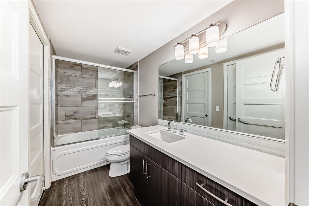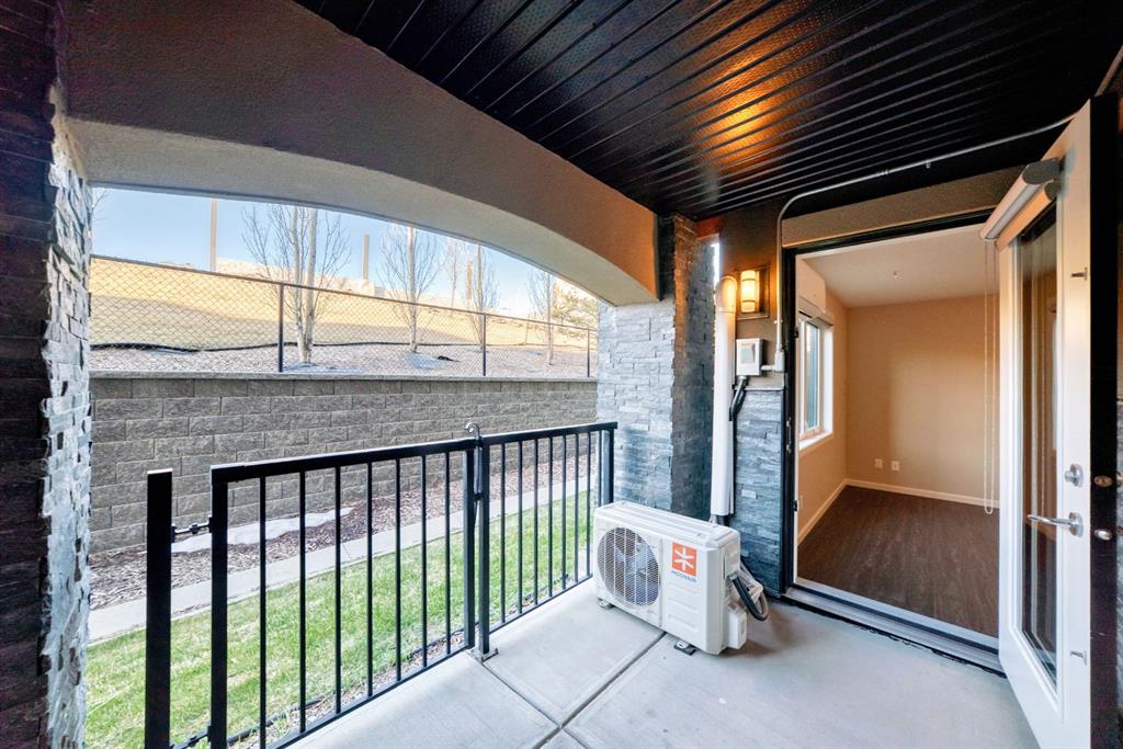 Welcome to this fully upgraded 2 BED, 2 BATH + DEN GROUND-FLOOR CONDO in the desirable community of KINCORA. The DEN offers the perfect flex space for a home office, reading nook, or lifestyle workspace. This bright, open-concept unit features UPGRADED QUARTZ COUNTERTOPS THROUGHOUT THE UNIT and STAINLESS STEEL APPLIANCES, along with modern finishes, PATIO ACCESS, and the comfort of an AIR CONDITIONING UNIT for SEASONAL ENJOYMENT. The home includes TWO TITLED PARKING STALLS—one underground and one surface—plus abundant storage space, with storage attached to the underground stall and an additional STORAGE LOCKER on the second floor. This 18+ BUILDING offers beautifully maintained grounds, park benches, and ample visitor parking, all just minutes from shopping, dining, walking paths, and transit in the beautiful Kincora neighbourhood.