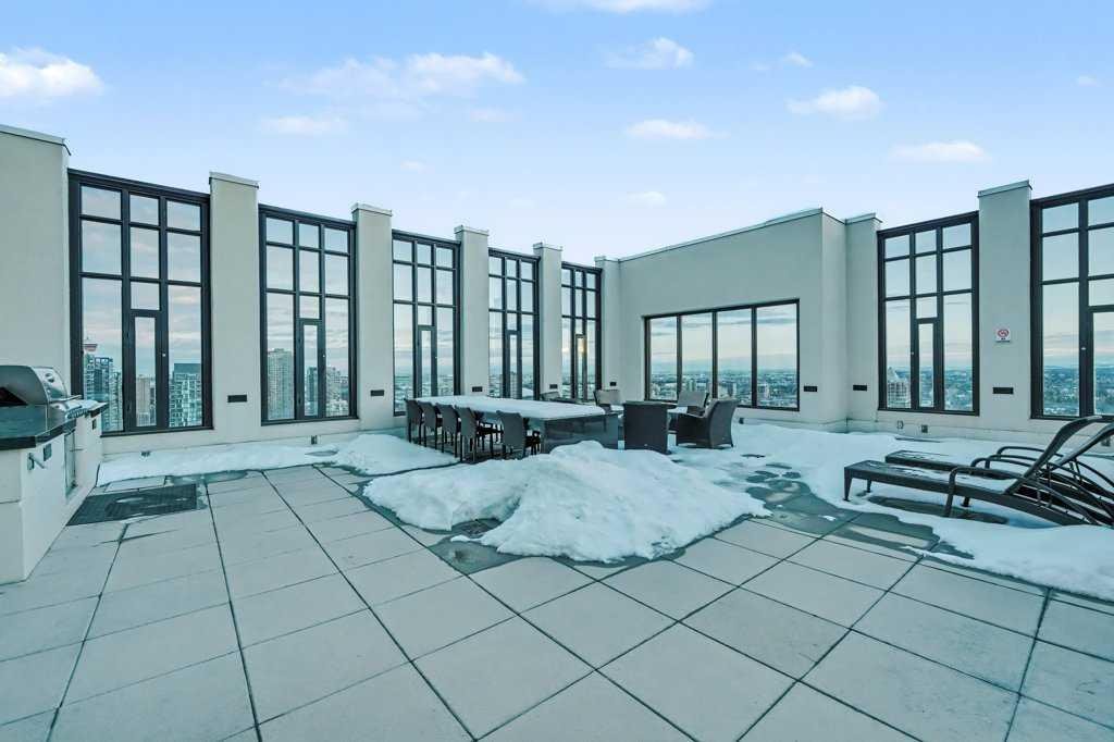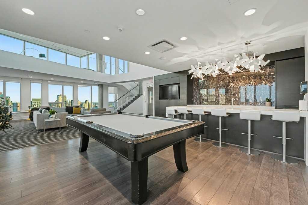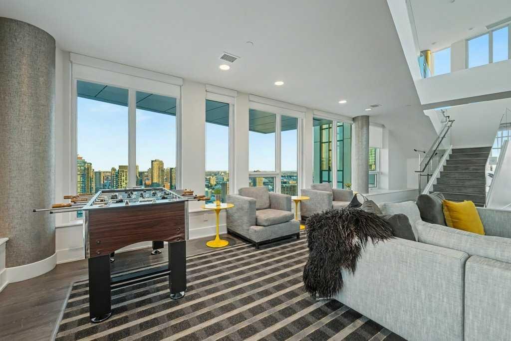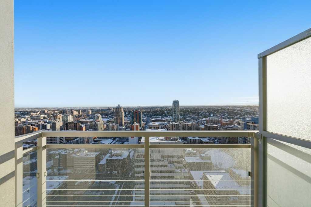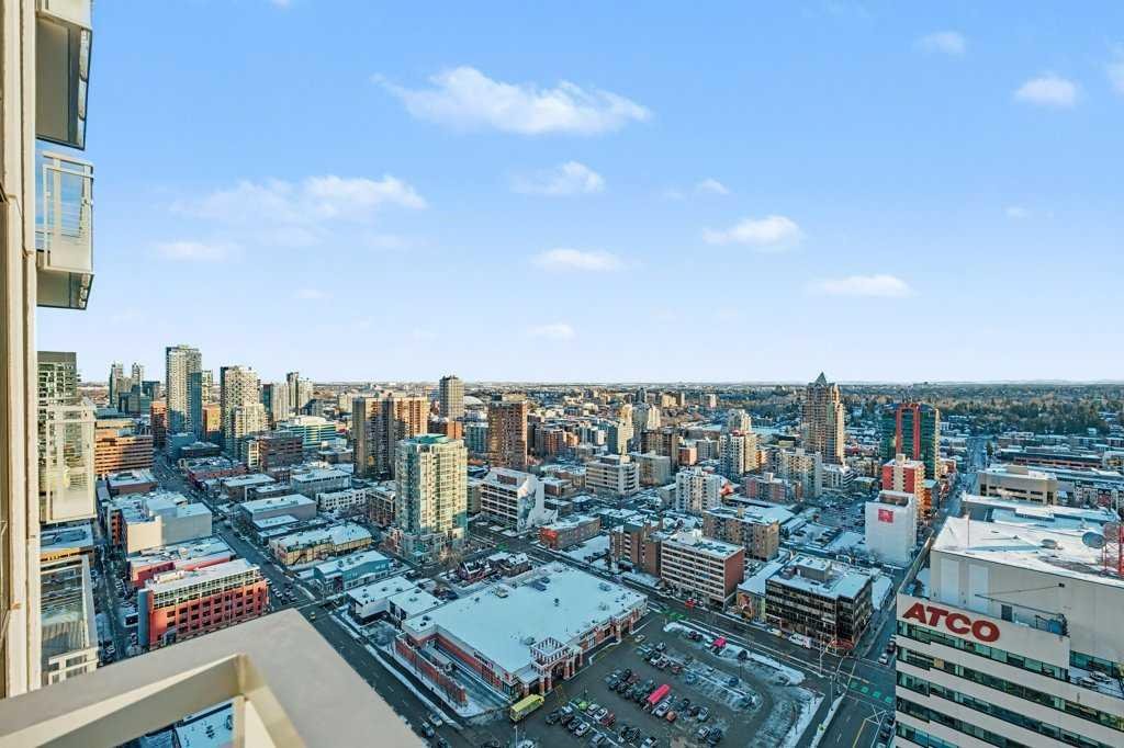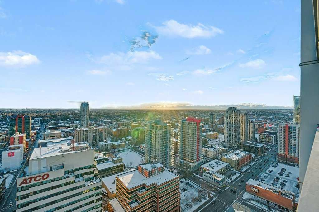 Located on the 31st floor of Mark on 10th, this 1-bedroom unit offers impressive south-facing city and mountain views along with a bright, modern layout. Floor-to-ceiling windows bring in great natural light, and the kitchen is finished with integrated appliances including a built-in refrigerator and dishwasher, built-in oven and microwave, a gas cooktop, and sleek cabinetry for a seamless look. The bedroom features sliding glass doors that keep the space open while still providing privacy. A fully tiled bathroom with a glass-enclosed shower, in-suite laundry, and a private balcony complete the suite. Mark on 10th offers premium amenities including a rooftop patio with 360-degree views, hot tub, BBQ area, steam room, sauna, fitness centre, owner’s lounge, a third-floor outdoor garden terrace, and 24-hour concierge and security. Ideally located in the heart of the Beltline, you are steps from restaurants, cafés, groceries, transit, and everything downtown Calgary has to offer. High-floor units like this are rare, so come experience the views and everything this building has to offer.