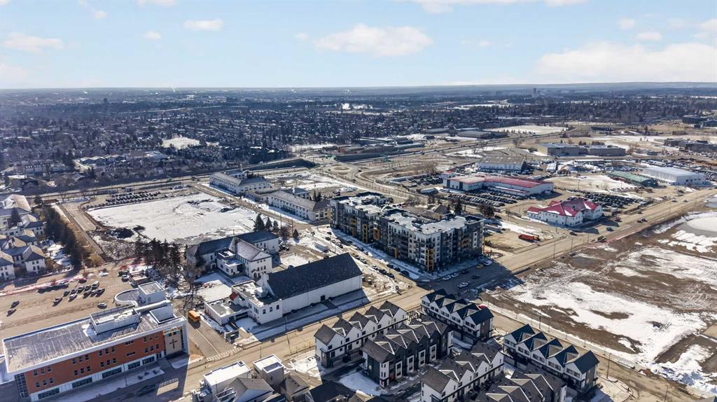 Welcome to this beautifully designed 1-bedroom + office/flex space condo offering nearly 689 sq. ft. of functional living in the highly sought-after community of Currie Barracks. Built by Rohit Communities, this unit stands out with its smart layout, modern finishes, and exceptional use of space—perfect for professionals, remote workers, or investors. The thoughtfully designed kitchen maximizes efficiency using the work triangle concept, while the oversized waterfall quartz island serves as the true centerpiece—ideal for cooking, dining, and entertaining. The open-concept layout flows seamlessly into the bright living area, enhanced by large windows that flood the space with natural light. A key highlight of this home is the dedicated office/flex space, offering the perfect work-from-home setup or additional storage—an increasingly rare and valuable feature in condo living. The spacious primary bedroom comfortably fits a queen-sized bed with room for nightstands, while the modern bathroom and in-suite stacked washer/dryer add everyday convenience. Step outside to your private deck, perfect for summer BBQs or relaxing evenings. This unit also includes one titled underground parking, providing security and comfort year-round, and a storage locker. Ideally located just 7–10 minutes to downtown, Mount Royal University, Marda Loop, CF Chinook Centre, and Glenmore Park, this home offers the perfect balance of urban access and community charm. With its generous size, functional layout, and added flex space, this is a standout opportunity in one of Calgary’s most desirable inner-city communities.