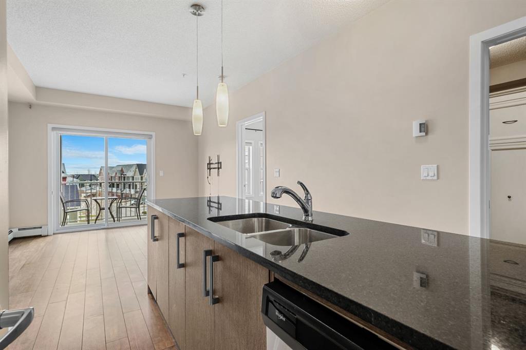 There’s something special about coming home to a place that feels like a retreat where life slows down just enough to be enjoyed! Welcome to Ebony Apartments in the heart of Mahogany, one of Calgary’s most sought after lake communities. Here, life feels a little slower, a little more intentional, and a lot more connected. Imagine waking up and choosing how your day unfolds. A peaceful walk along scenic pathways coffee in hand or a morning jog past natural wetlands, and ending your evenings watching the sunset by the lake. With 63 acres of pristine lake water, 21 acres of private beach, and year round activities from summer paddle boarding to winter skating Mahogany invites you to embrace every season. The community offers a lifestyle that feels like a getaway, every single day. This is more than a condo it’s a community where neighbours become familiar faces and everyday moments turn into lasting memories. Perched on the third floor, this beautifully maintained 2 beds & 1 bath unit offers 572 sqft of bright, functional living. The moment you step inside, you’re greeted by natural light that fills the space, creating an inviting and uplifting atmosphere. The kitchen is both stylish and practical, complete with stainless steel appliances and a generous breakfast bar perfect for slow mornings with coffee or casual evenings spent catching up with friends. The adjacent living room flows seamlessly to your private balcony through sliding glass doors, creating an ideal spot to unwind and take in the day. Tucked away for added privacy, the primary bedroom offers a peaceful retreat, while the versatile second bedroom or den is complete with a Murphy bed that effortlessly adapts to your lifestyle, whether as a guest space, home office, or both. In-suite laundry and additional storage space provides everyday convenience, while the building’s private gym adds an extra layer to the lifestyle making it easy to stay active without ever leaving home. Whether you’re stepping into homeownership, simplifying your lifestyle, or investing in a vibrant community, this home offers something more meaningful—a place where comfort, connection, and a sense of escape come together. Just minutes from your door, Mahogany Village Market offers everything from daily essentials to local cafés, while an evening at Chairman’s Steakhouse adds a touch of indulgence close to home. While Mahogany stands out for the cohesive design and thoughtfully planned community feel, it’s the lifestyle here that truly captures your heart!