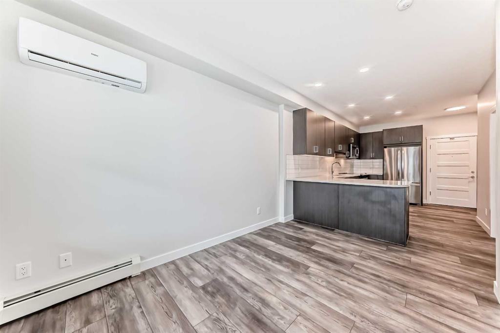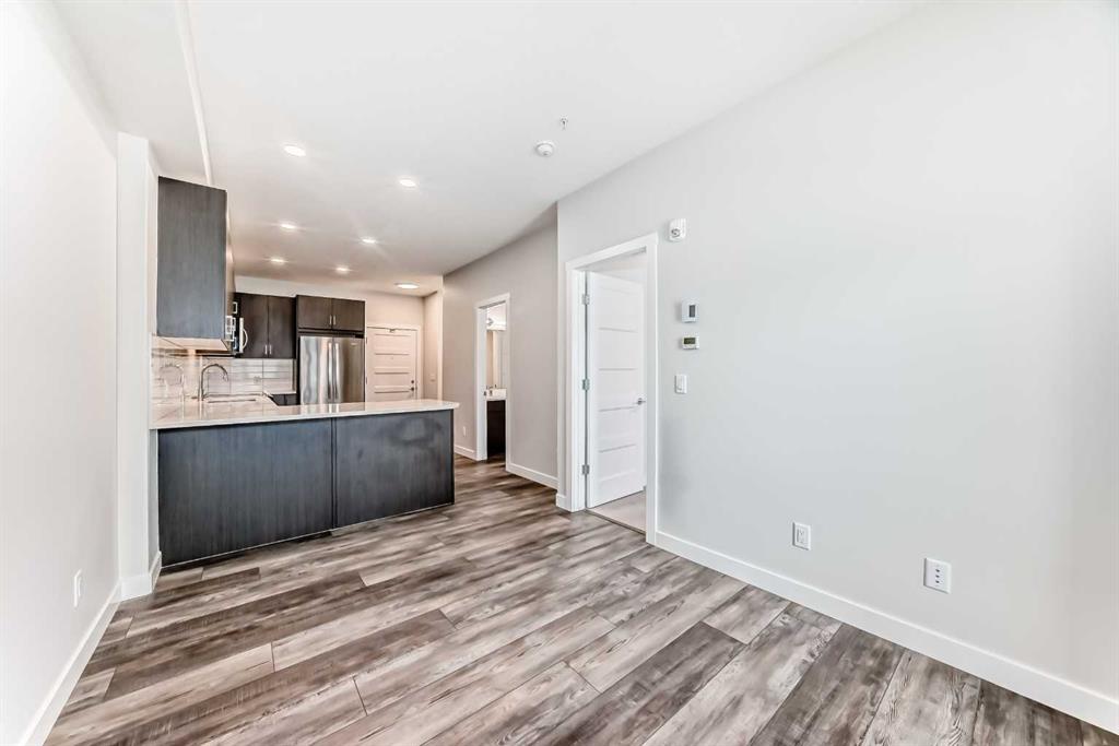 Experience elevated living in this beautifully appointed third-floor condo in the sought-after Bow360 complex, nestled in the peaceful and prestigious community of Wolf Willow, one of SE Calgary’s premier golf course neighborhoods. Perfectly suited for first time buyers or young professionals, this thoughtfully designed 1 bedroom, 1 bathroom home offers a stylish and functional living space. Step inside to discover a bright, open-concept layout featuring 9-foot ceilings, expansive windows, and durable vinyl plank flooring that complements the home’s clean, contemporary aesthetic. The spacious kitchen is a true highlight, complete with elegant quartz countertops, ample cabinetry, and a seamless flow into the living and dining areas, ideal for both everyday living and entertaining. From here, step out onto your generous size balcony, perfect for relaxing evenings and taking in stunning sunset views. The well designed bedroom serves as a private retreat, featuring a walk through closet and direct access to a modern ensuite bathroom. Additional conveniences include in-suite laundry, air conditioning, titled UNDERGROUND HEATED parking, and secure storage, ensuring comfort and ease year round. Low condo fees cover nearly all utilities except electricity, offering exceptional value. Surrounded by natural beauty and urban convenience, this prime location places you just moments from Blue Devil Golf Course, scenic walking and biking trails, parks, and nearby shopping and dining. With quick access to Stoney Trail, Deerfoot Trail, and major transit routes, commuting is effortless. Combining modern elegance, practical design, and an unbeatable location, this home offers the perfect balance of comfort, style, and lifestyle, an exceptional opportunity to make Wolf Willow your home.