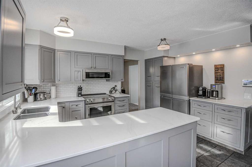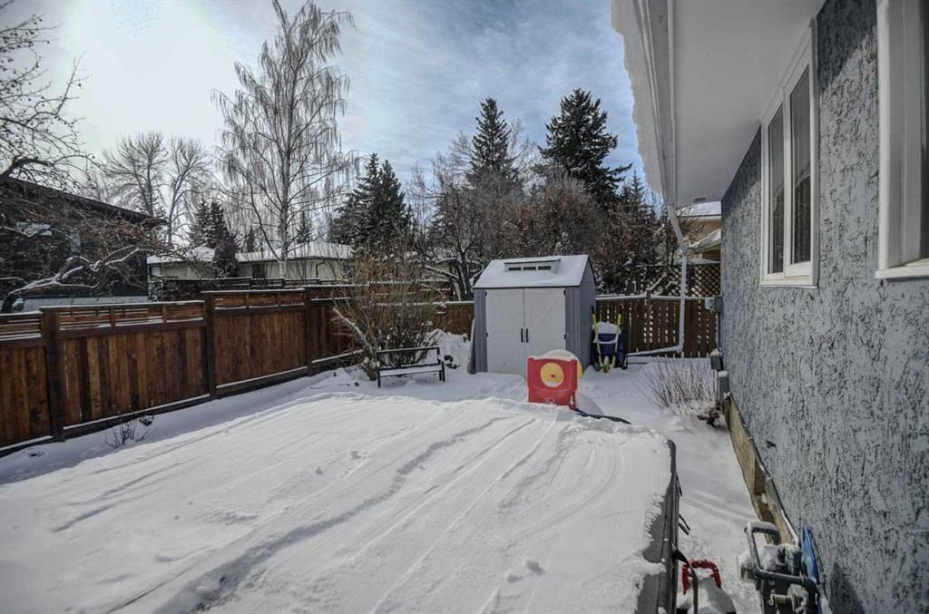 OPEN HOUSE Saturday February 21 and Sunday February 22 from 1 – 3 pm! Large 2 storey split in desirable, amenity rich, Canyon Meadows Estates. Loaded with upgrades and truly move in ready. All the major updates have already been completed, including new kitchen appliances (2025),new washer and dryer (2025), new ECO Star rated windows and gorgeous double front door (2025), plus a new furnace, central air conditioning, hot water tank, and garage furnace (2023). The main floor features a chef-inspired kitchen with stone countertops, ample cabinet space, a breakfast nook, a large formal dining room, and a spacious front living room. You’ll also enjoy the sunken family room with a wood burning fireplace, and patio doors leading to a large deck and sunny south facing backyard. This level also includes convenient bedroom currently being used as an office, main floor laundry and direct access to the oversized 22′ x 28′ heated garage with an 11’ ceiling. Upstairs, you’ll find a large primary suite with walk in closet and 4-piece ensuite, along with two additional generously sized bedrooms and another 4-piece bathroom. The fully developed basement offers even more living space, including a large family/rec room, a large bedroom, an office/den, a 3-piece bathroom, a storage area, and a large furnace room with built in shelving to keep everything neatly organized. This home is a must-see, beautifully updated, spacious, and priced to move. All that’s left to do is move in!