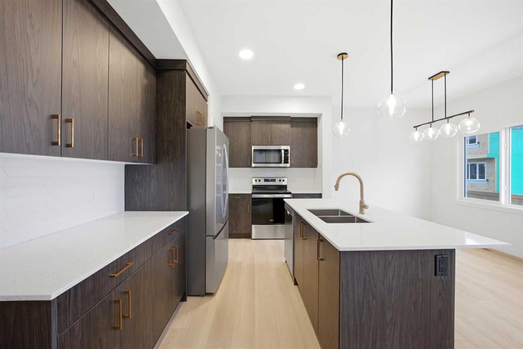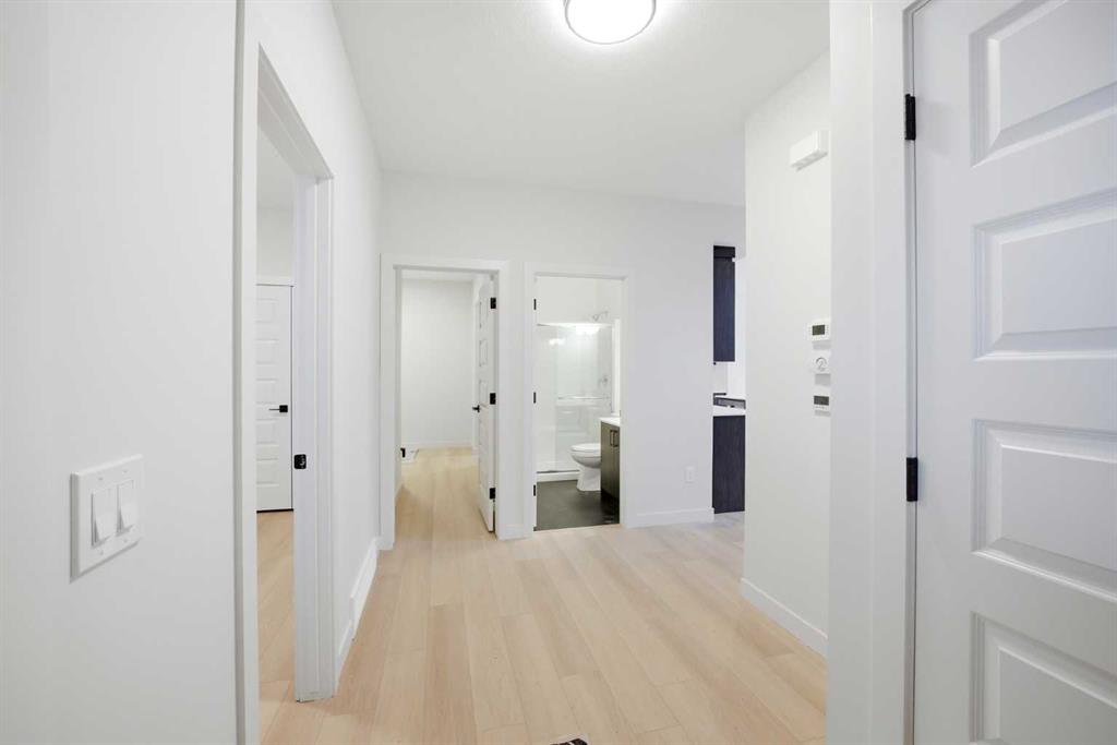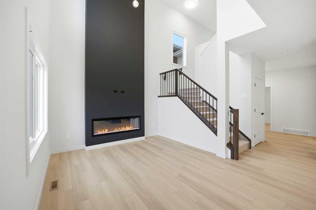 Welcome to your new home in Waterford, Chestermere! Experience modern elegance in this sprawling 2,075 SQ. FT. FRONT-DRIVE SEMI-DETACHED HOME, thoughtfully designed with the modern family in mind. The main floor invites you in with a seamless open layout, highlighted by a STUNNING “OPEN TO ABOVE” LIVING ROOM featuring a custom accent wall and a sleek electric fireplace. Designed for ultimate versatility, the main level includes a RARELY FOUND FULL BEDROOM AND BATHROOM WITH A STANDING SHOWER—perfect for elderly parents, guests, or a quiet home office. The chef-inspired L-SHAPED KITCHEN BOASTS A WALKTHROUGH PANTRY leading to a highly functional mudroom. Upstairs, discover a spacious bonus room bathed in natural light from the open-to-above, a convenient laundry room, and three generous bedrooms. The primary retreat features a double vanity ensuite, much needed walk-in shower, and a spacious walk-in closet. The unfinished basement is prepared for future development, FEATURING A SEPARATE SIDE ENTRY, EXTENDED 9 FT. HEIGHT, TWO REAR EGRESS-SIZED WINDOWS, and a mechanical room tucked away to maximize floor space. Situated on the southwest edge of Chestermere, Waterford offers a peaceful “Lake City” lifestyle with a quick commute to Calgary via easy access to Glenmore Trail and 17th Ave. You are a few minutes away from Rainbow Creek Elementary and Chestermere Lake Middle School, as well as local groceries and popular restaurants. Move-in ready and just minutes from the water—your lakeside retreat awaits! View the 3D tour and book your showing today.