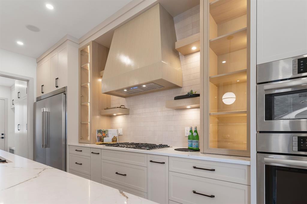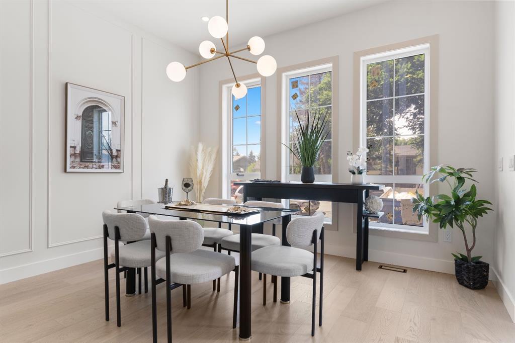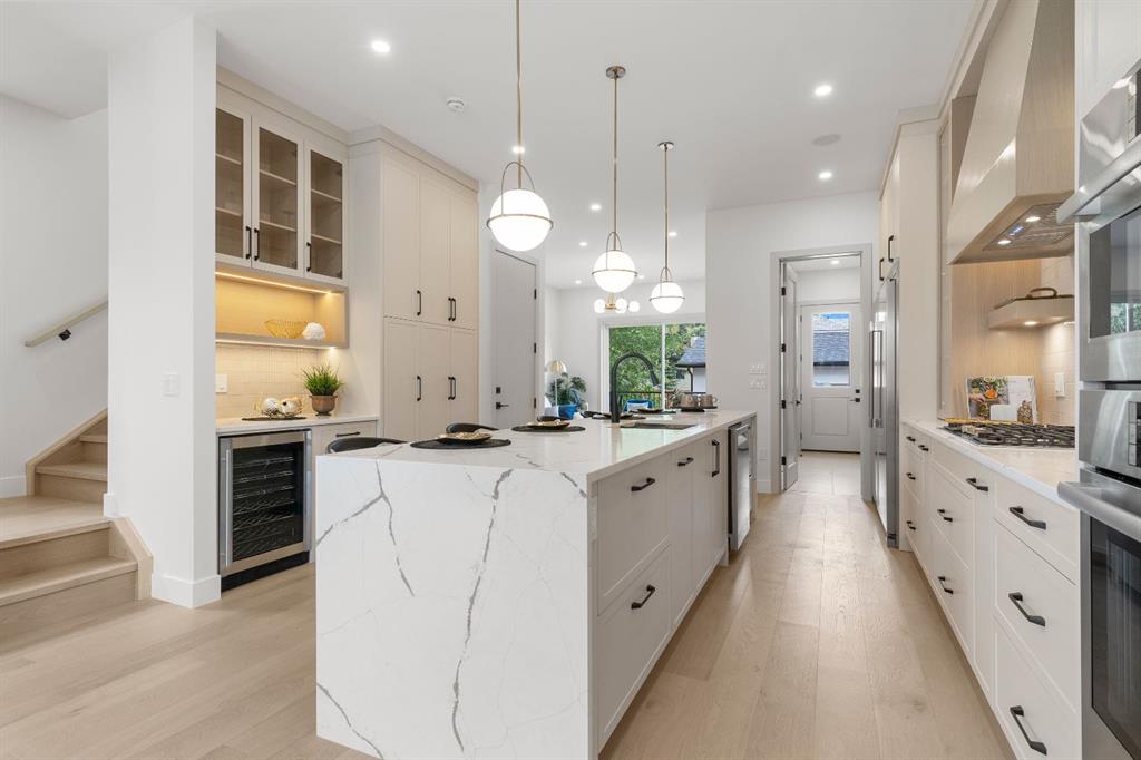 Glenbrook’s Finest! Step into a bright and inviting open-concept main floor where function meets elevated design. At the front of the home, a beautiful formal dining area sets the stage for stylish gatherings and elegant dinner parties. Just beyond, the chef-inspired kitchen boasts a massive waterfall quartz island, double-wide fridge, Bosch cooktop, wall oven, and dishwasher. Adjacent to the island, a thoughtful prep and storage area includes a built-in bar fridge and extended cabinets with convenient pull-out drawers—keeping everything organized and within easy reach for seamless entertaining. Warm neutral tones, built-in ceiling speakers, and timeless finishes create the perfect backdrop for both daily living and hosting with ease. At the rear of the home, a cozy fireplace lounge flows effortlessly onto a sprawling east-facing deck—ideal for enjoying quiet sunny summer mornings or relaxed evenings. Just off the kitchen, a spacious mudroom offers even more custom cabinetry to store your family’s essentials. Upstairs, a versatile loft area offers the perfect spot for a home office or reading nook. The massive primary retreat features heated floors in the spa-inspired ensuite, and a deep soaker tub. Two additional generously sized bedrooms and a stylish four-piece bath complete the upper level. Downstairs, the home offers even more flexibility with a bright and spacious legal basement suite (pending final City of Calgary approval). Featuring two private bedrooms and a large open living area, this level is ideal for extended family, guests, or future rental income. This home isn’t just beautifully finished—it’s a thoughtful investment in style, space, and long-term potential.