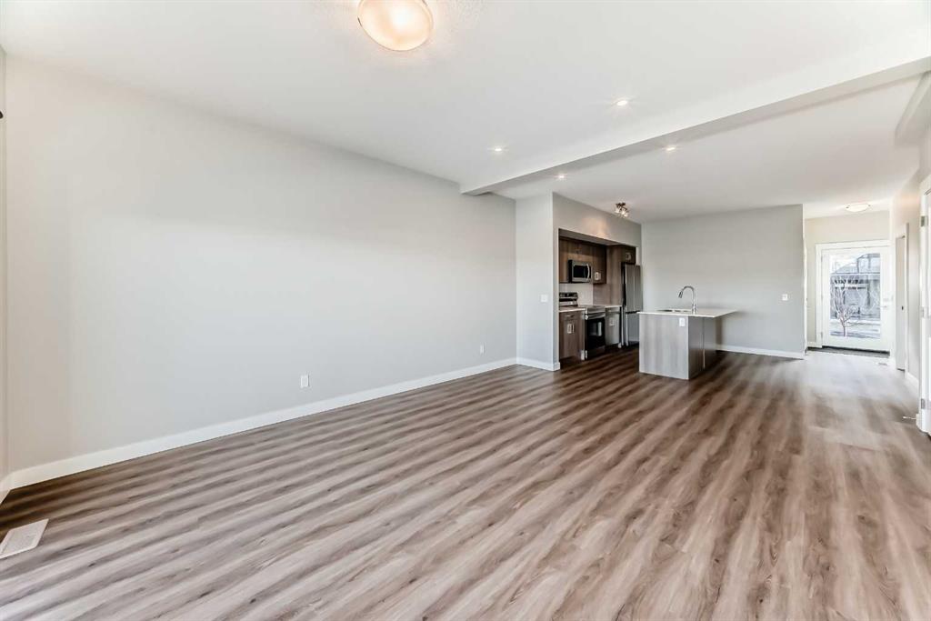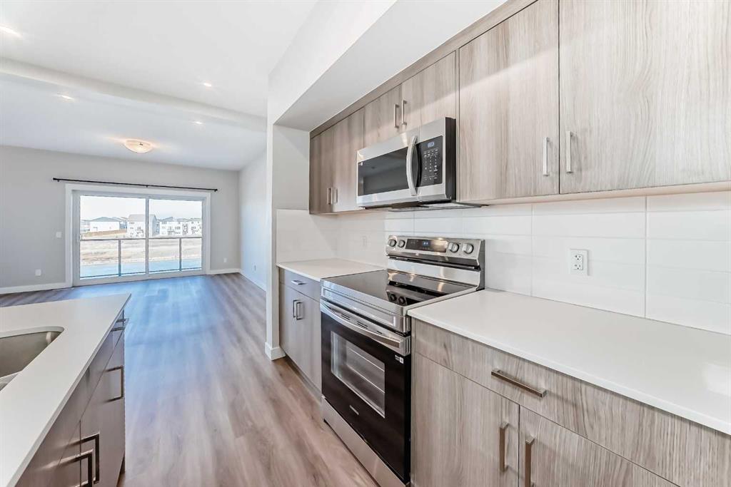 Welcome to this beautifully maintained, almost new 2 storey townhouse in the vibrant community of Livingston NW! Just over a year old, this home offers modern design, quality finishes, and a like new feel throughout. Step inside to a bright and open main floor featuring impressive 9 foot ceilings. The contemporary kitchen is equipped with stainless steel appliances, sleek quartz countertops, and ample cabinet space perfect for both daily living and entertaining. The spacious living room provides direct access to a private deck, ideal for enjoying your morning coffee or summer evenings. A convenient 2 piece bath is also located on the main floor. upstairs, you’ll find three generously sized bedrooms, including a primary suite complete with a walk-in closet and a stylish 4 piece ensuite. An additional full bathroom completes the upper level. The walk-out basement leads to a concrete patio, offering additional out door living space. Backing onto a serene pond and scenic walkway green space, this home boasts beautiful views year round. During the summer months, relax and take in the peaceful setting with a picturesque fountain right behind your home. Combining modern comfort, a prime location, and like new condition, this is an exceptional opportunity you won’t want to miss!