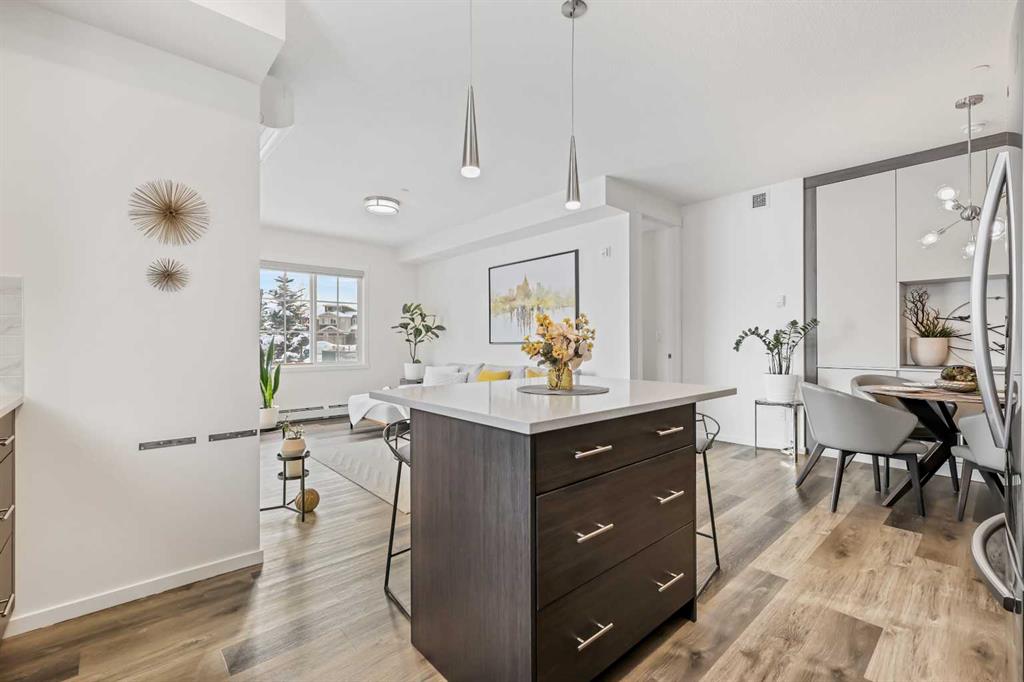 ** ALERT Hot New Posting – $369,900 ** East-facing LAKE VIEWS and located in the highly sought-after community of Sage Hill Park I, you will discover a lovely, upgraded, bright, and beautiful 2-bedroom, 2 Bath plus main-floor model with east-facing views – Immediate Possession!! This home is located in the premier location building, ideally within walking distance to terrific amenities outside your door – Live healthy with an unrivalled community experience, from work to working out, dining to shopping, studying to a movie night. New urbanity, Sage Hill Park reflects the values of the people who choose to live, work, play, learn, settle & thrive. Bonus: MOVE IN NOW! Titled indoor parking, 13.5′ x 6.6′ balcony with glass railing. Value Added features – Check and Compare; 910 RMS sq. ft. of living space. Nice and cozy extras… built-in wall cabinet storage, modern white-painted casings, doors & baseboards, powered window coverings, convenient laundry with storage & a stacked washer/dryer. Upgraded white shaker-style Kitchen cabinets doors with tall uppers + cabinets + lots of countertop space, dual basin stainless steel sink, full height tile backsplash, pull-out kitchen faucet, window sink with lake view, and breakfast nook to sit 4. Enjoy all that Sage Hill Park has to offer with a well-maintained home offering fantastic value! With quick access to Symon Parkway, Stony Trail, and Deerfoot, this home is an ideal choice—a small, Pet-Friendly Complex with Board Approval. Call your friendly REALTOR(R) to book a viewing!