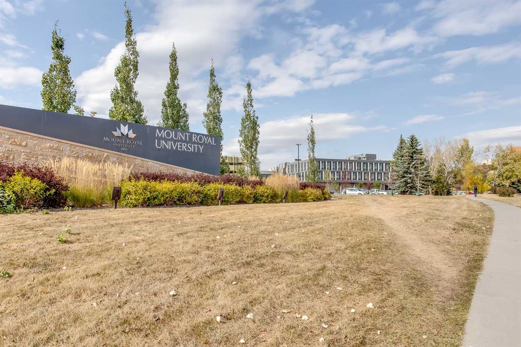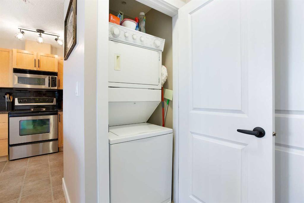 Step into this bright and welcoming 1 bedroom plus den unit in The Gateway Garrison Green. Offering 582 sq ft with an open layout plus a generous balcony that truly extends your living space. Thoughtfully designed, the open-concept living and dining area flows seamlessly into the kitchen, making it an easy place to relax at the end of the day or hosting friends and family. The kitchen is the heart of the home, with plenty of counter space, great storage, and a comfortable island or breakfast bar setup overlooking the main living space. The living room easily accommodates a full size sofa, and media centre with direct access to your private balcony for morning coffee or evening BBQs. The bedroom is a true retreat, offering comfortable space for a queen bed, side tables, and dresser. A separate den near the entry makes an ideal home office, study, or hobby room, giving you the flexibility so many buyers are looking for in a modern condo. Functionality is built in, with a defined foyer, in-suite laundry, and smart use of closets and storage throughout the suite to keep everything organized and out of sight. With its efficient floor plan, inviting balcony, and the highly walkable Garrison Green location just minutes from Mount Royal University, parks, and quick routes downtown, this condo is an excellent opportunity for first-time buyers, students, young professionals, or investors looking for a low-maintenance home in a sought-after SW community.