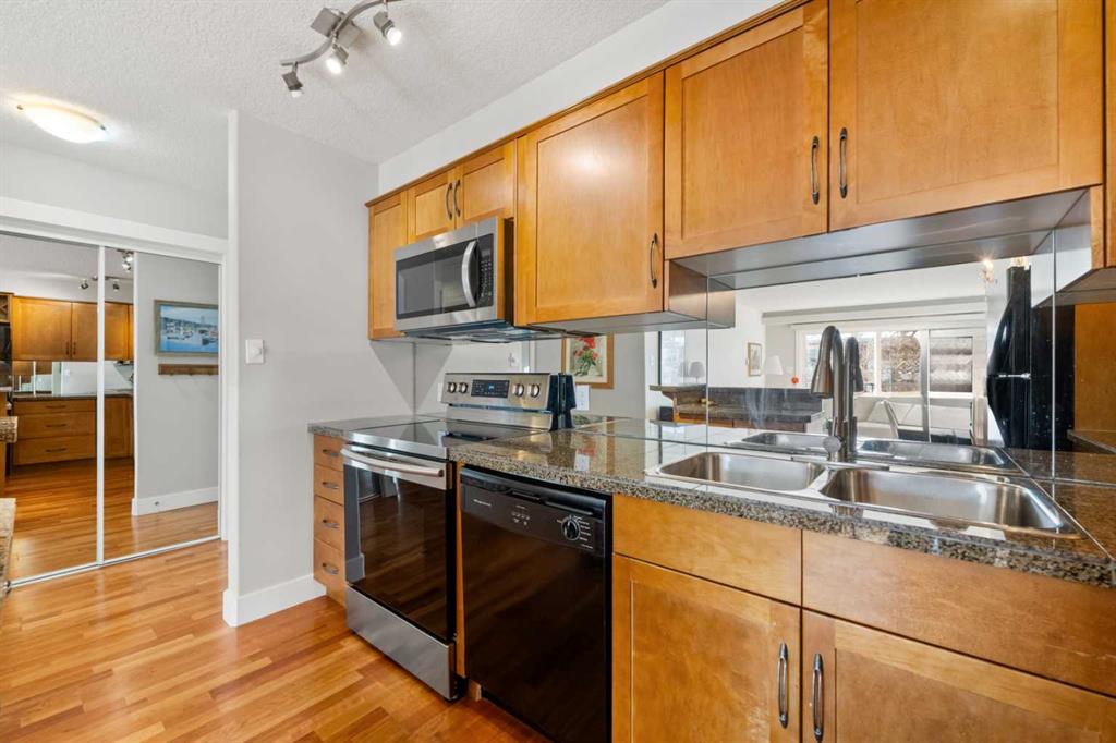 This beautifully presented two-bedroom residence is in a well-managed, pet-friendly building with low condo fees and the rare advantage of TWO parking stalls—one in the underground heated parkade and the other behind the complex. Everyday essentials, dining options, and transit are all just steps from your door. The sleek, contemporary kitchen is designed for both function and style, making it perfect for cooking, hosting, or simply enjoying your space.
