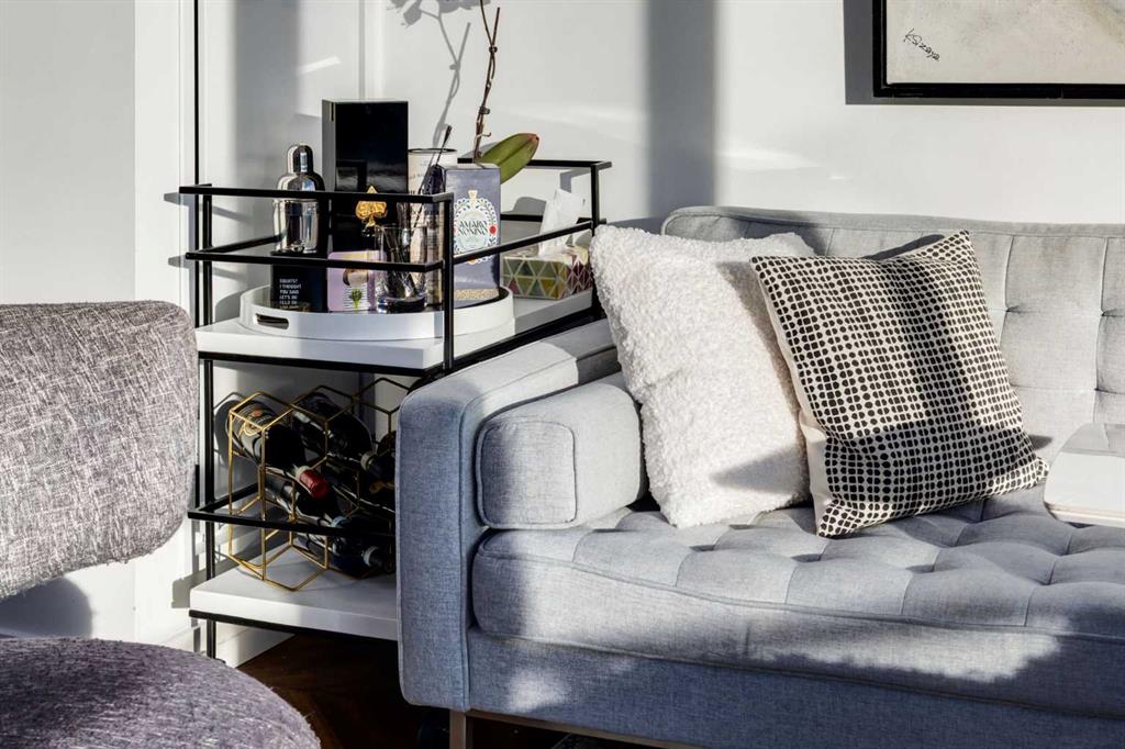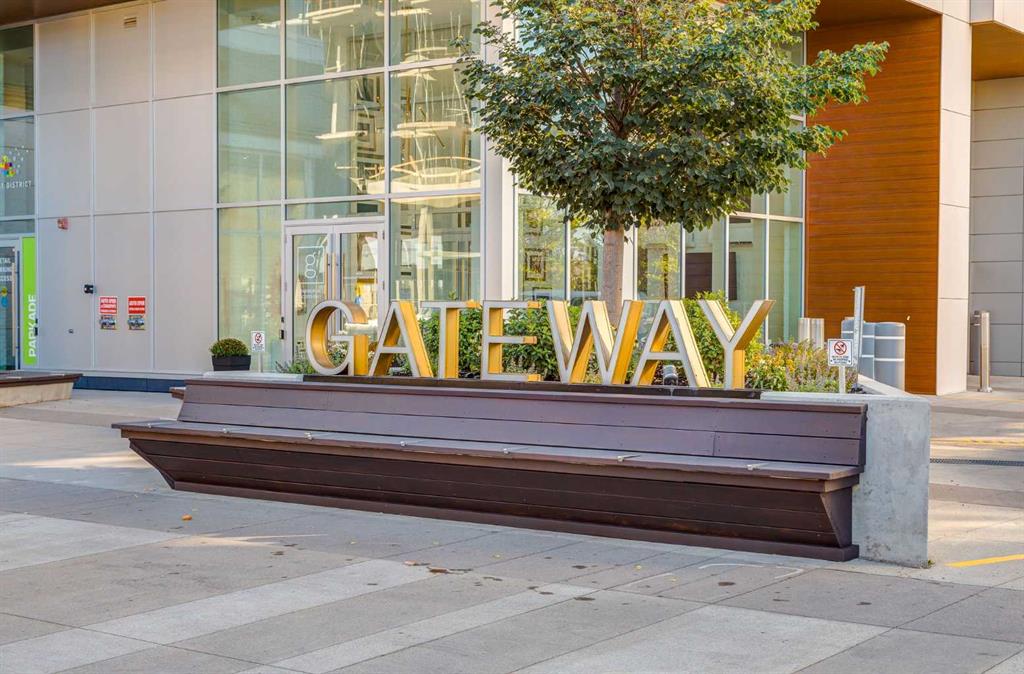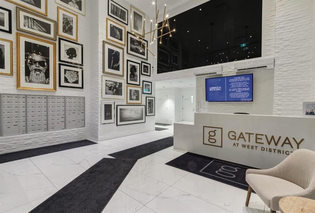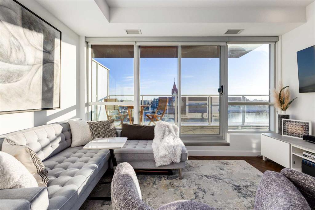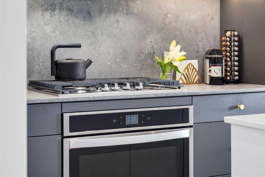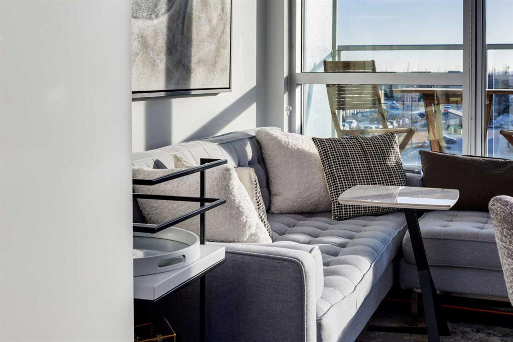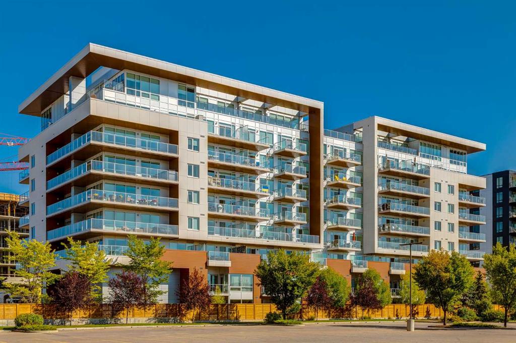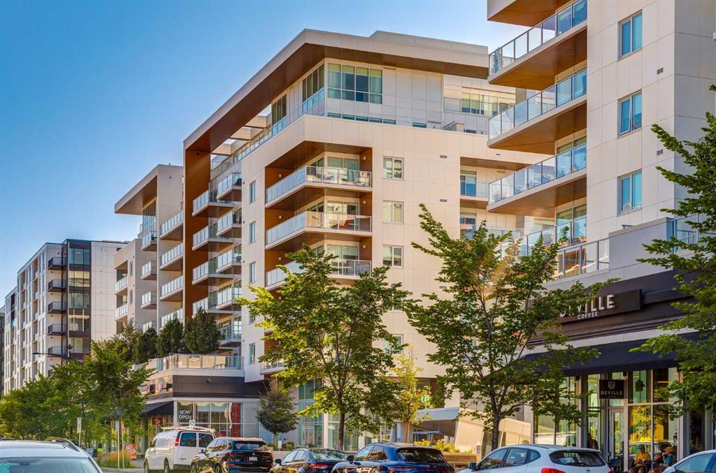 OPEN HOUSE SATURDAY, FEBRUARY 14TH FROM 2PM TO 4PM. Located in the heart of West District, this bright south-facing two-bedroom, two-bathroom home offers an exceptional blend of privacy, natural light, and outdoor living. One of the few residences in the building with a generously sized patio, it backs onto the beautiful church park, offering views that will always remain open. The home offers 792 square feet of thoughtfully designed interior space, expanding to 962 square feet when including the private patio. The patio is perfect for morning coffee, summer dining, or entertaining, with plenty of room for a BBQ and outdoor seating. The open-concept living and dining areas are filled with natural light from floor-to-ceiling windows. High ceilings and refined painted finishes create a bright and inviting atmosphere. The chef-inspired kitchen features matte grey slate cabinetry with soft-close hardware, brushed gold accents, white quartz countertops, a coordinating backsplash, and premium appliances, including a Whirlpool five-burner cooktop and oven, Elica range hood, and Fisher & Paykel integrated fridge and freezer. The primary suite is a serene retreat, with large windows that fill the room with natural light. The walk-in closet provides ample storage, and the beautifully finished three-piece ensuite features quartz countertops, modern fixtures, and spa-inspired finishes. The second bedroom is spacious and versatile, ideal as a guest room, home office, or creative space, with convenient access to the four-piece bathroom. Additional highlights include an oversized washer and dryer and ample storage throughout. Residents enjoy access to premium amenities, including a rooftop patio, private owner’s lounge, secure underground visitor parking, bike storage, EV charging stations, and concierge services. Ideally located in Calgary’s West District, you are steps from parks, walking paths, boutique shops, cafés, and dining options. A rare opportunity to secure a south-facing home with beautiful views, elevated outdoor living, and exceptional value. Schedule your private viewing today!