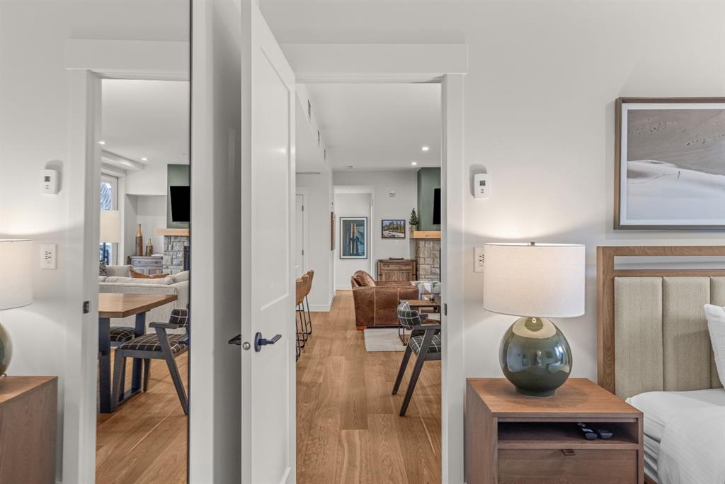 Tourist zoned and revenue-ready in Spring Creek! Across the street from Bridgette Bar and an easy scenic stroll to shops, restaurants and Main Street, Canmore. This is a rare opportunity in Timberstone Lodge, offering 4 bedrooms, 3 full bathrooms, and a southwest corner position on the third floor with scenic mountain views. Designed for guest comfort and strong short-term rental appeal, the open-concept layout features generous sized gathering spaces, a highly functional kitchen with KitchenAid stainless steel appliances, quartz countertops, and solid wood cabinetry. Step outside to an oversized covered deck (over 30 feet long!) with room to BBQ, dine, and lounge. Two spacious, primary-style bedrooms each offer beautiful ensuites. One with dual sinks, a soaker tub, and a modern curbless shower. The second includes a walk-in closet, another five-piece ensuite, and a private water closet. Two additional bedrooms and the 3rd full bath, provide a rare short term rental option for groups to enjoy the convenience of staying together in one property. Underground heated parking and storage complete this amazing opportunity. Spring Creek’s superior craftsmanship includes BUILT GREEN certification, with geothermal heating and cooling. Enjoy Timberstone’s amenities including an outdoor hot tub with mountain views and a fitness room, plus an unbeatable Spring Creek lifestyle. A standout short-term rental package in one of Canmore’s most in-demand vacation rental spots!
