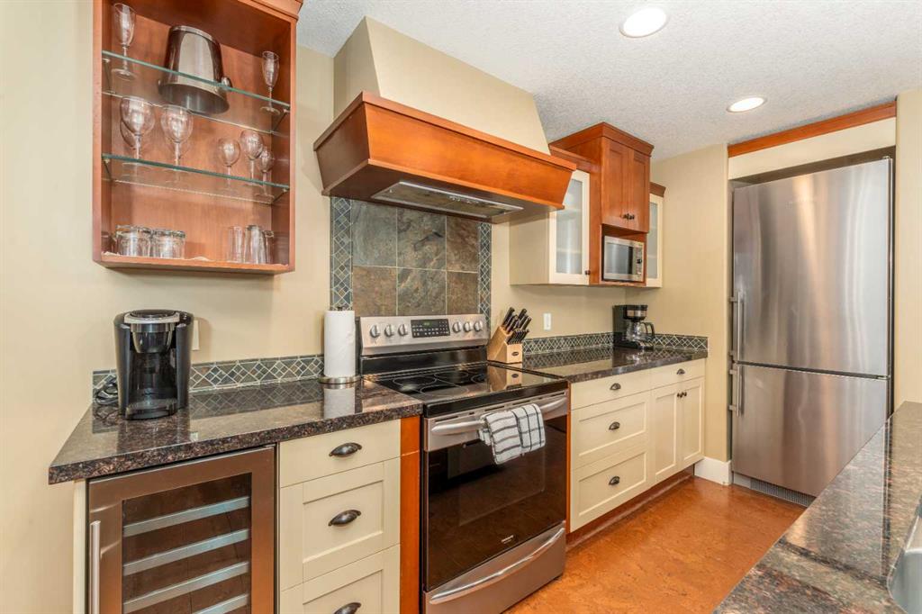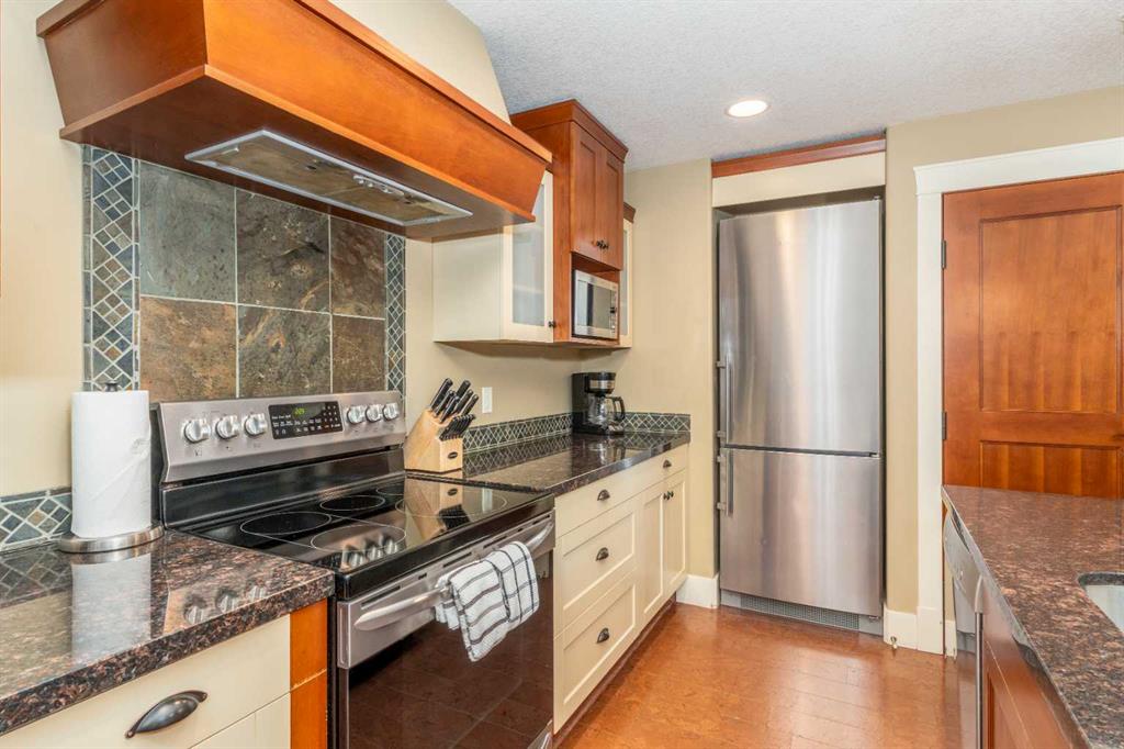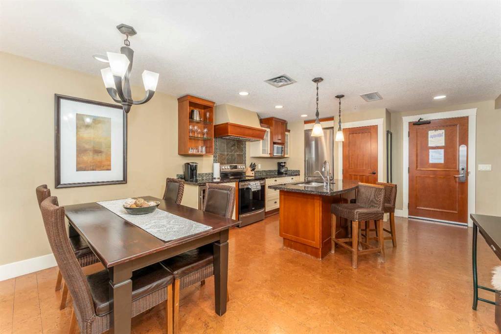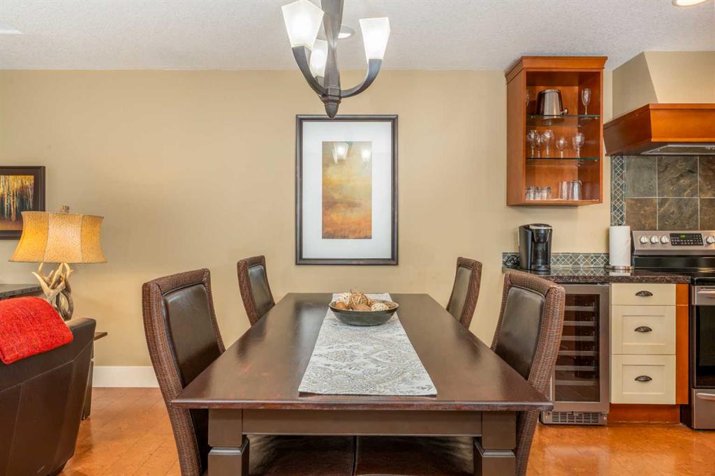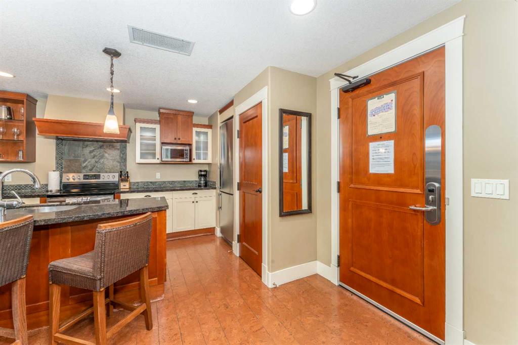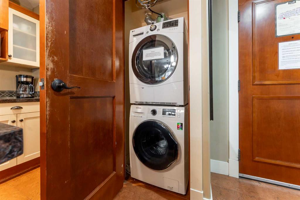 Picture yourself in one of Canmore’s most desirable destinations, Solara Resort & Spa, where lifestyle meets investment. This suite offers the largest of the one-bedroom floorplans, welcoming you with a bright open-concept living space designed for comfort and connection. The gourmet kitchen is a chef’s delight, featuring stylish two-tone cabinetry, granite countertops, a spacious island, imported cork floors, and stainless appliances ~perfect for preparing meals after a day of Rocky Mountain adventure. Gather in the dining area, comfortably set for four, then sink into the living room’s plush sofa, which doubles as a queen bed, while the ambient fireplace sets the mood for a cozy evening. Step outside to your private covered balcony, the ideal spot for stargazing against a backdrop of snowcapped peaks. When it’s time to unwind, retreat to the spa-inspired bathroom before recharging in the king-sized bedroom for another day of mountain living. Life at Solara extends far beyond your suite with amenities including an indoor pool, hot tub, One Wellness Spa & Fitness Centre, Axis Bar & Kitchen, MainSpace event venue, Epic Liquor store, and heated underground titled parking with secure gear storage. With zoning that permits short-term nightly rentals, this property offers an exceptional opportunity to generate strong revenue while enjoying your own private Rocky Mountain getaway whenever you choose. The list price includes GST. Consult an Accountant to discuss deferral options.