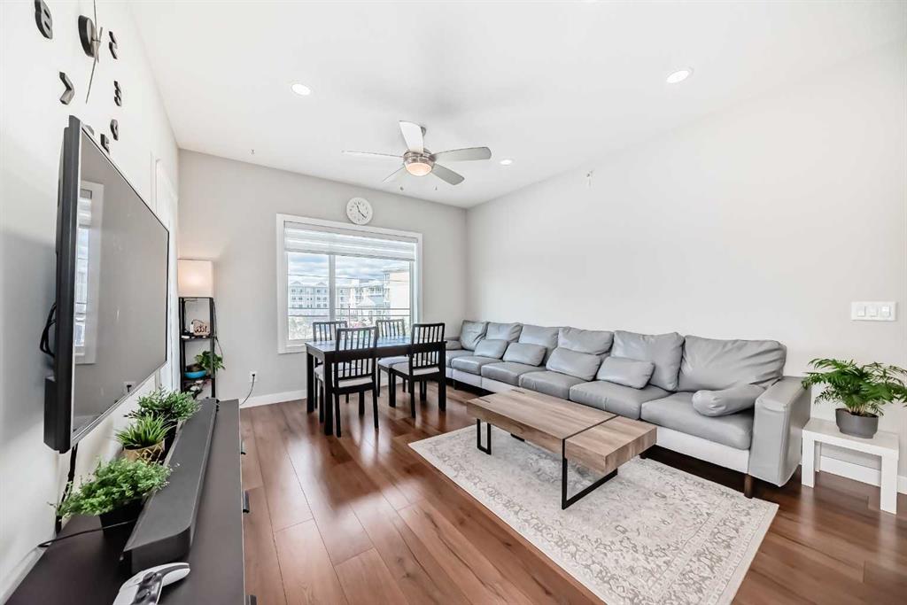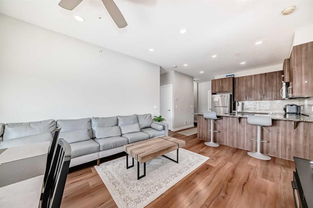This home features an open-concept main floor designed for comfortable everyday living, with a bright living area, bar stool dining space, and a contemporary kitchen complete with ample cabinetry and workspace. Large windows provide natural light, creating a warm and inviting atmosphere.