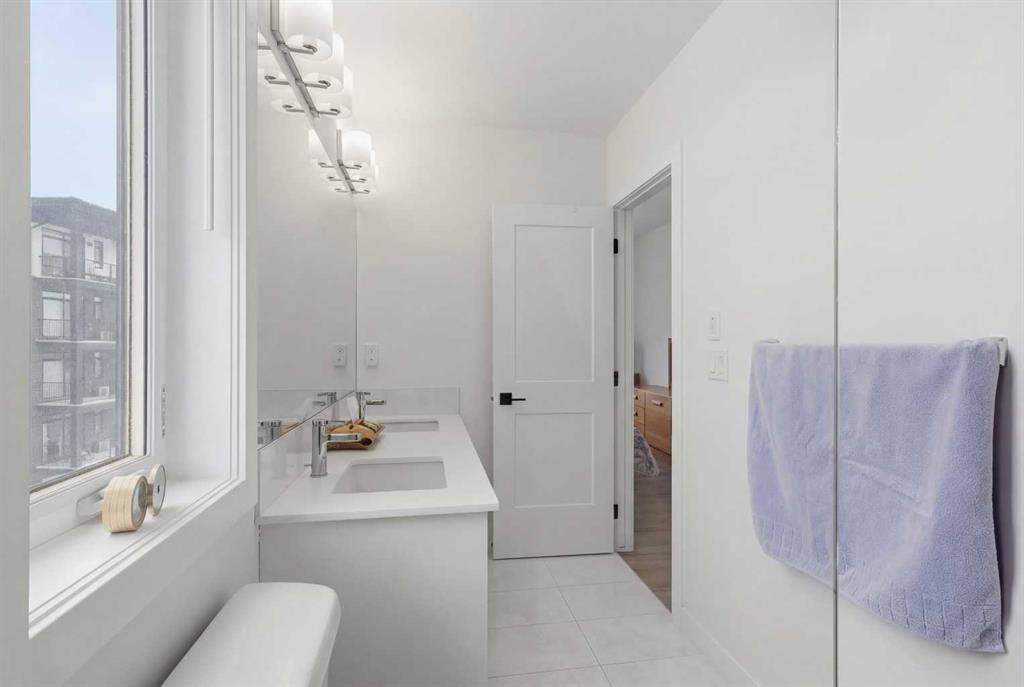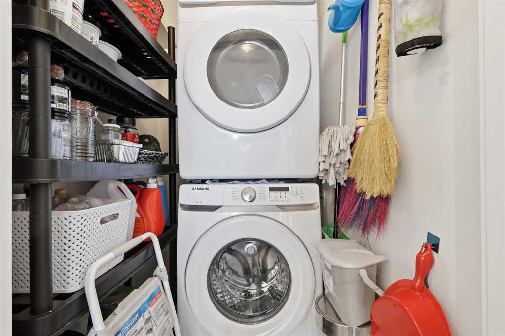The primary bedroom retreat offers a large walk-in closet and a beautiful ensuite with dual sinks and a tiled shower. A spacious second bedroom and full 4-piece bathroom provide flexibility for guests, family, or a home office. You’ll also appreciate the convenient mudroom-style entry with a closet, plus stacked washer and dryer for added functionality.