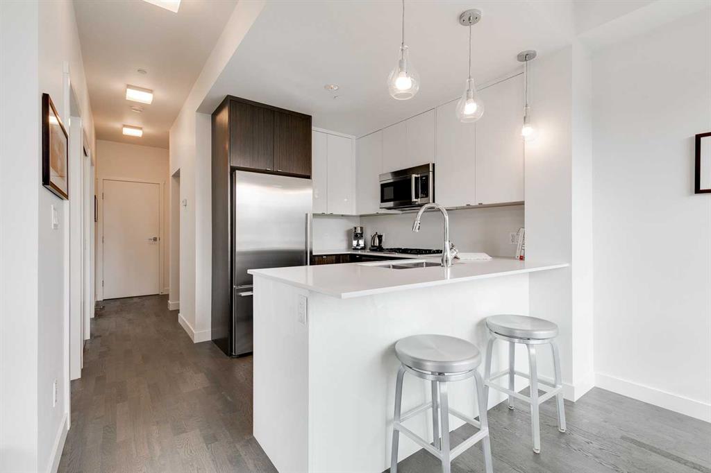 Welcome to this truly exceptional, immaculate & BRIGHT 1-bedroom PLUS DEN, CORNER UNIT, South & West facing in the fabulous walkable neighbourhood – Mission! Modern open-plan design, 9′ ceilings, SS appliances, quartz countertops & sleek cabinetry. Large windows flood the space with natural light. Enjoy your private balcony, perfect for relaxing or entertaining. Spacious bedroom, 4 piece bath & in-suite laundry. This building sets itself apart with exceptional Safety & NEW SECURITY SYSTEM that few condos can match. Video surveillance software, monitored parkade entrance with extra cameras, LED motion-sensor lighting throughout stairwells & parking (brighter, safer & energy-efficient) Strong proactive very well-managed condo board. Dedicated owners who take pride in maintaining & preserving their investment. Ample guest parking & PET FRIENDLY. This rare opportunity combines style, security, location & a wonderful warm & welcoming community of owners in one of Calgary’s most sought-after neighbourhoods. Step outside your door to cafĂ©s, boutiques, river pathways, MNP Sports Centre & downtown just a short stroll away. This is more then a condo – it’s a LIFESTYLE.