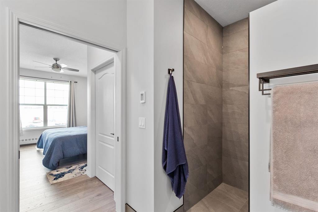 Welcome to this stunning 55+ condo that has been fully renovated from top to bottom! This bright and sunny two-bedroom, two-bathroom home boasts soaring high ceilings, an open-concept layout, and elegant modern finishes throughout. With walk-in showers, there are no concerns for mobility. You will appreciate the huge kitchen which will hold your everyday as well as special occasion dishes. This home features a detached garage, as well as a second, assigned parking stall. All of this is located in a highly sought-after building with exceptional amenities, including management, social spaces, fitness facilities, guest suites and more, this beautiful unit offers the perfect blend of style, comfort, and community. A true must-see!