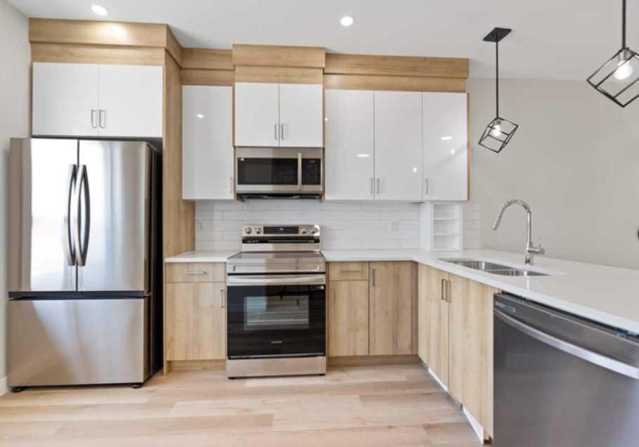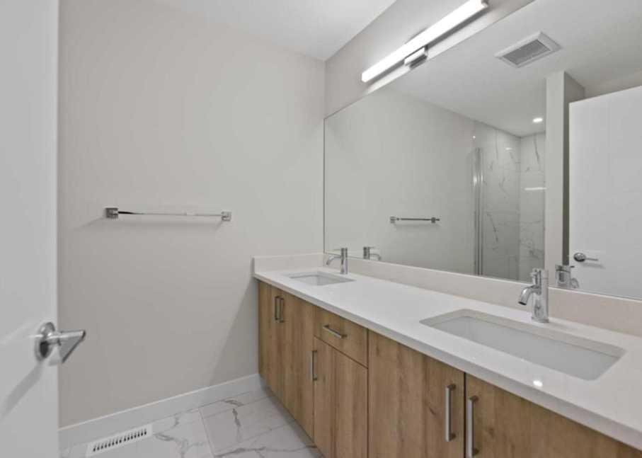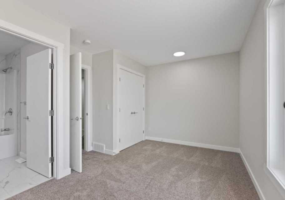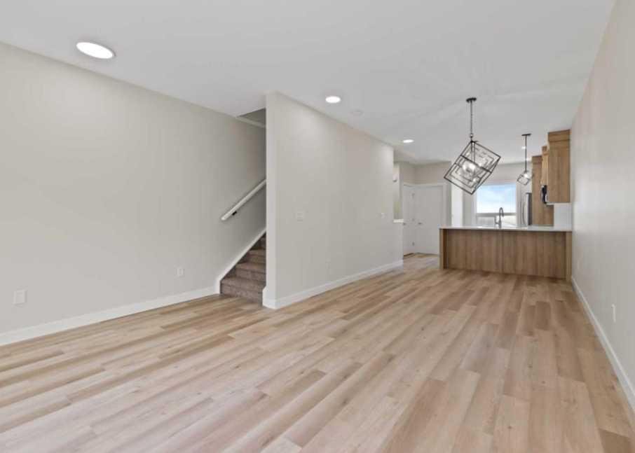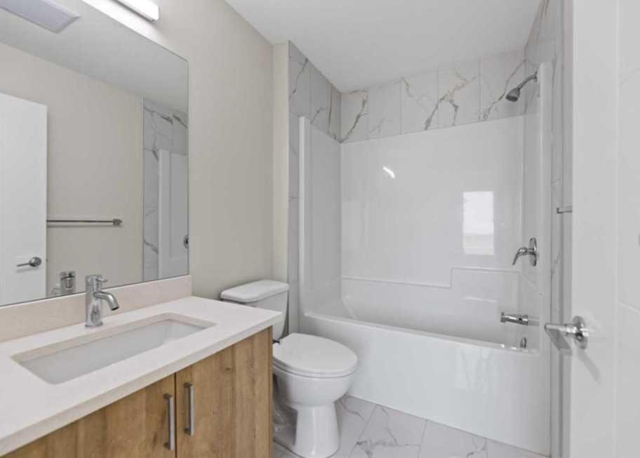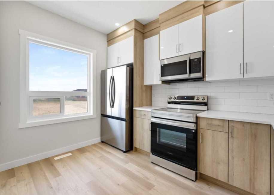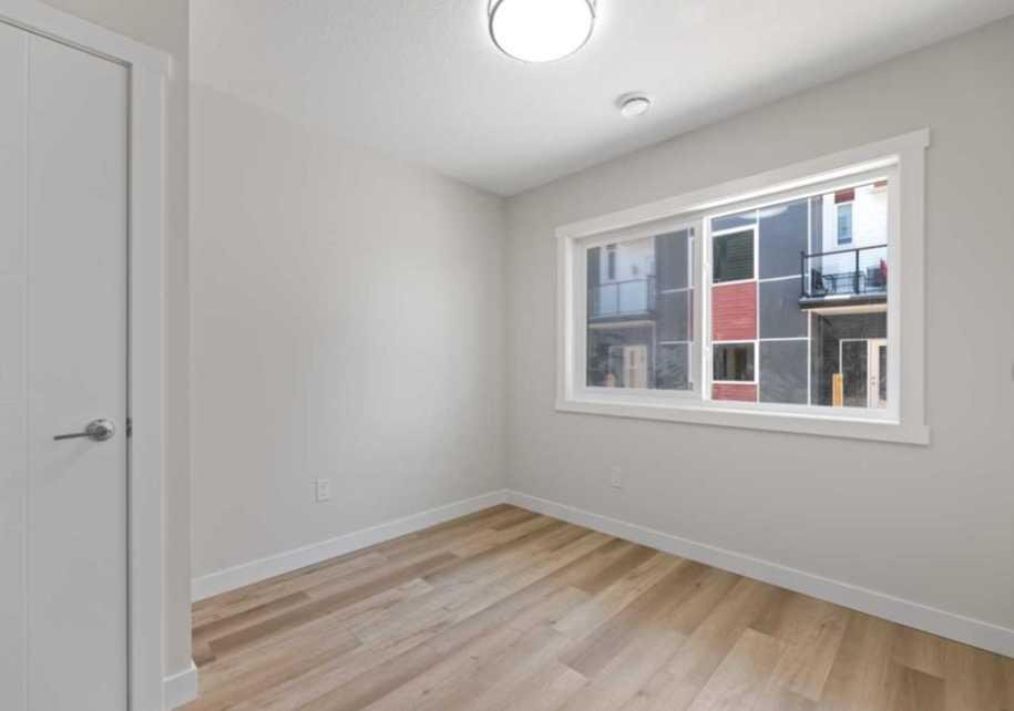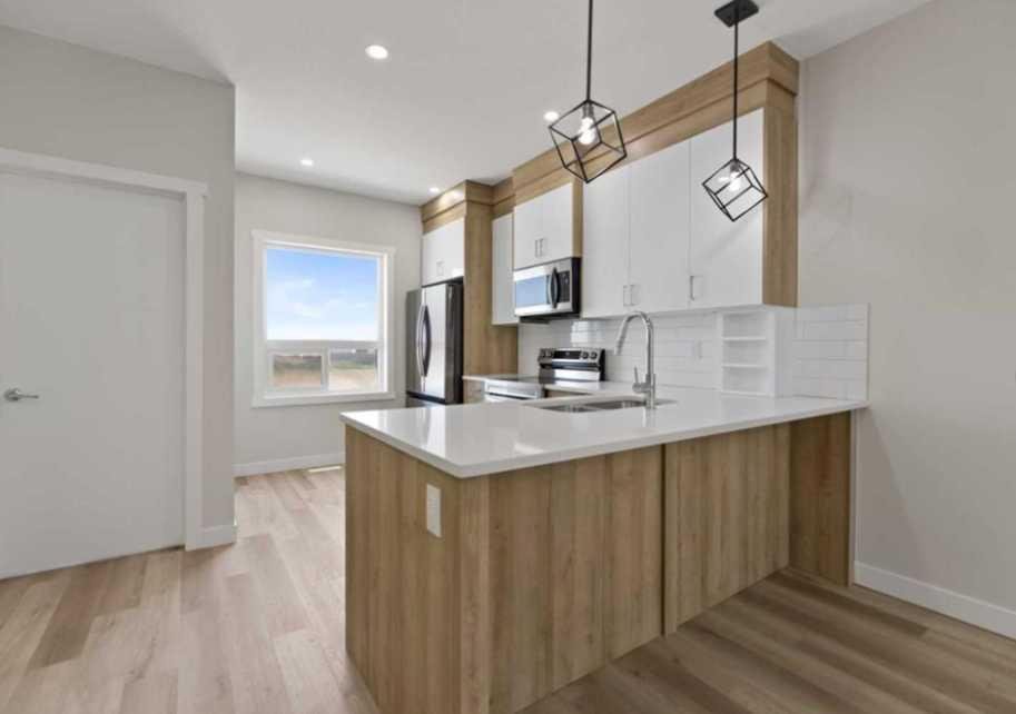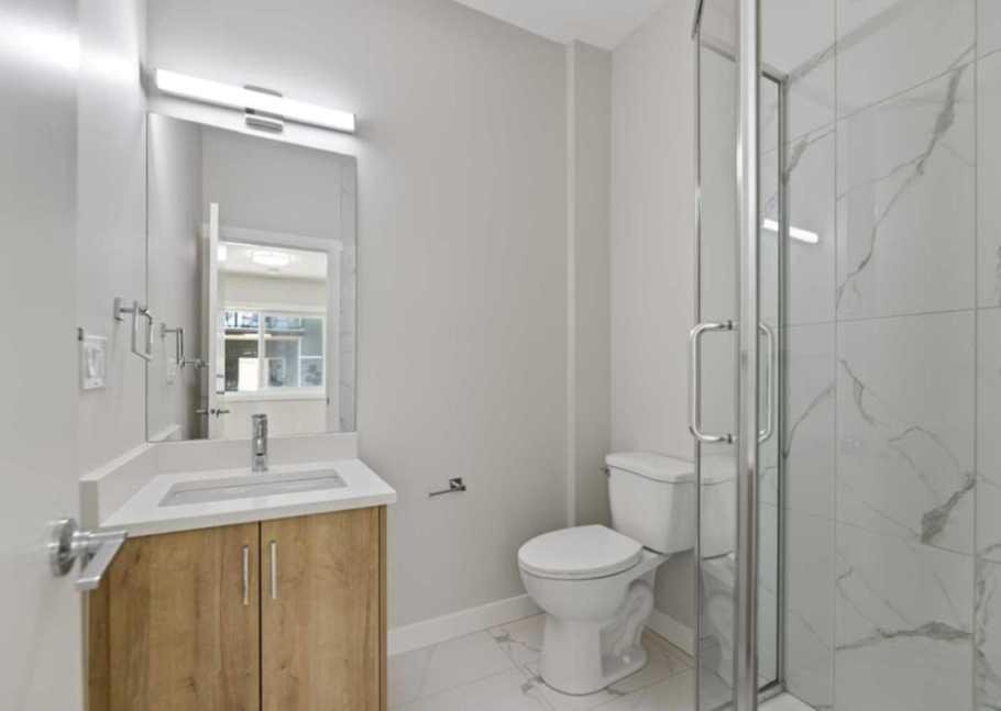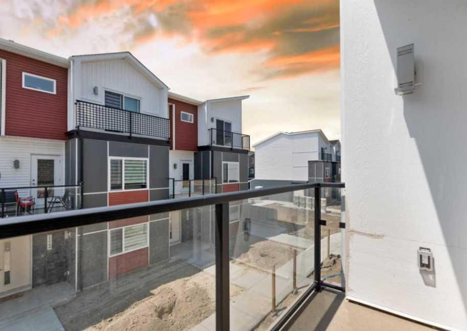 Welcome to this brand new modern townhouse offering 1,553 sq ft of thoughtfully designed living space in a desirable west facing location. This stylish 3-bedroom, 3.5-bathroom home delivers the ideal balance of comfort, function, and low-maintenance living. The main level features a welcoming entryway, direct access to the attached front garage, and a private bedroom with a full ensuite bathroom. This space is perfect for guests, a home office, or multi-generational living. The second floor showcases an open-concept layout filled with natural light, complete with a spacious living and dining area, a sleek modern kitchen with stainless steel appliances, and a private balcony that is ideal for evening relaxation or weekend BBQs. A convenient powder room completes this level. Upstairs, you will find two generously sized bedrooms, each with its own ensuite for maximum privacy. The laundry area with a stacked washer and dryer is also conveniently located on this upper floor. Positioned as the third unit from the corner, this west-facing home enjoys great natural light and modern curb appeal. Located near key amenities, green spaces, and commuter routes, this is an excellent opportunity to own a move-in-ready home.