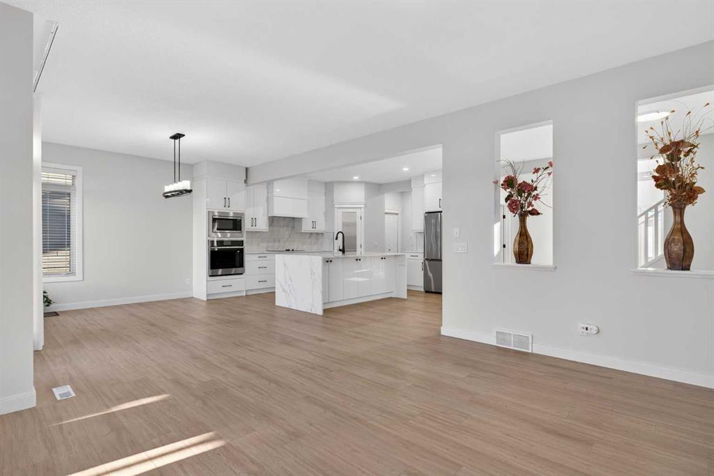 Welcome to this exquisite residence offering over 3,200 sq. ft. of beautifully developed living space, where modern luxury meets timeless sophistication. From the moment you step inside, you’ll be captivated by the home’s meticulous upgrades—featuring fresh designer paint, elegant new flooring, and fully renovated bathrooms. The open-concept layout is enhanced by soaring ceilings, sleek LED lighting, and an abundance of natural light, creating a warm and inviting ambiance throughout. At the heart of the main level is a chef-inspired gourmet kitchen, thoughtfully redesigned with top-tier appliances, contemporary countertops, and generous cabinetry—perfect for everyday living and entertaining alike. Just off the kitchen, a stylish dining area provides the ideal backdrop for family dinners or gatherings, while the grand living room centers around a cozy gas fireplace, making it the perfect place to relax on cooler evenings. A versatile flex room adds functionality to suit your lifestyle needs. Upstairs, you’ll find an expansive bonus room featuring vaulted ceilings, three skylights, and a private balcony—an impressive and sunlit retreat. The home boasts three spacious bedrooms, each designed with comfort in mind, and two fully upgraded bathrooms. The convenient laundry room includes a new linen closet, adding both style and practicality. The luxurious primary suite is a true sanctuary, complete with a large walk-in closet and a stunning 5-piece ensuite featuring a rejuvenating Jacuzzi tub—ideal for unwinding after a long day. The fully developed basement offers even more living space, featuring a soundproofed ceiling and a stylish 2-bedroom Legal suite with its own private entrance. This self-contained suite includes a modern kitchen with brand-new appliances, a full bathroom, and separate access—perfect for extended family, guests, or rental income. Located in a vibrant and family-friendly neighborhood, this home is surrounded by outstanding amenities including a FreshCo shopping center, nearby parks, a large field with a playground and baseball diamond, two elementary schools, and the soon-to-open Evanston Middle School. Enjoy easy transit access, flat walking paths ideal for all ages, and close proximity to Beacon Hill shopping center with Costco and Walmart. Plus, it’s just a 10-minute drive to Calgary International Airport. Additional recent upgrades such as new LED lighting, brand-new carpeting, and a newly installed EV charging outlet in the garage further elevate this already stunning property. This home truly has it all—space, style, location, and versatility. Don’t miss your opportunity to make it yours.