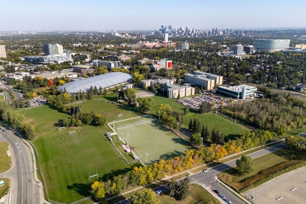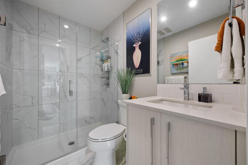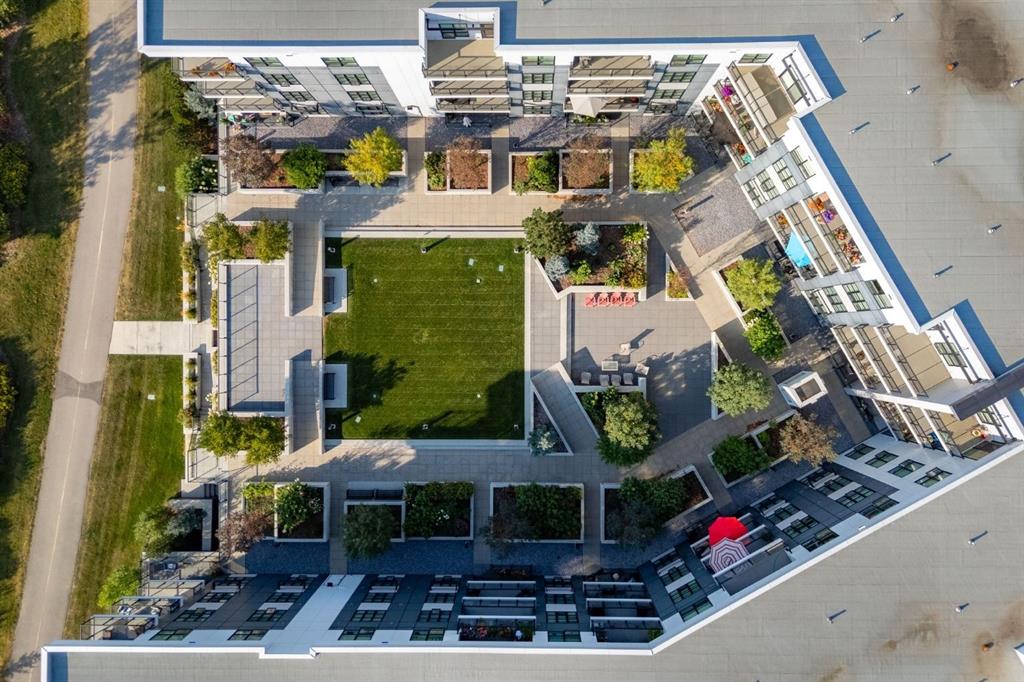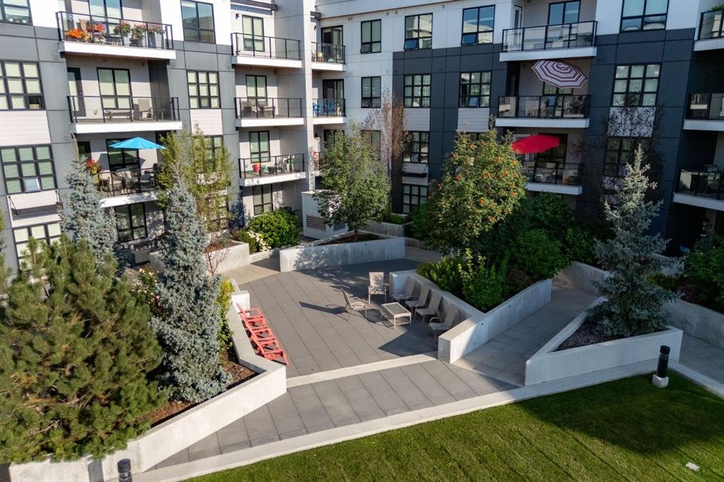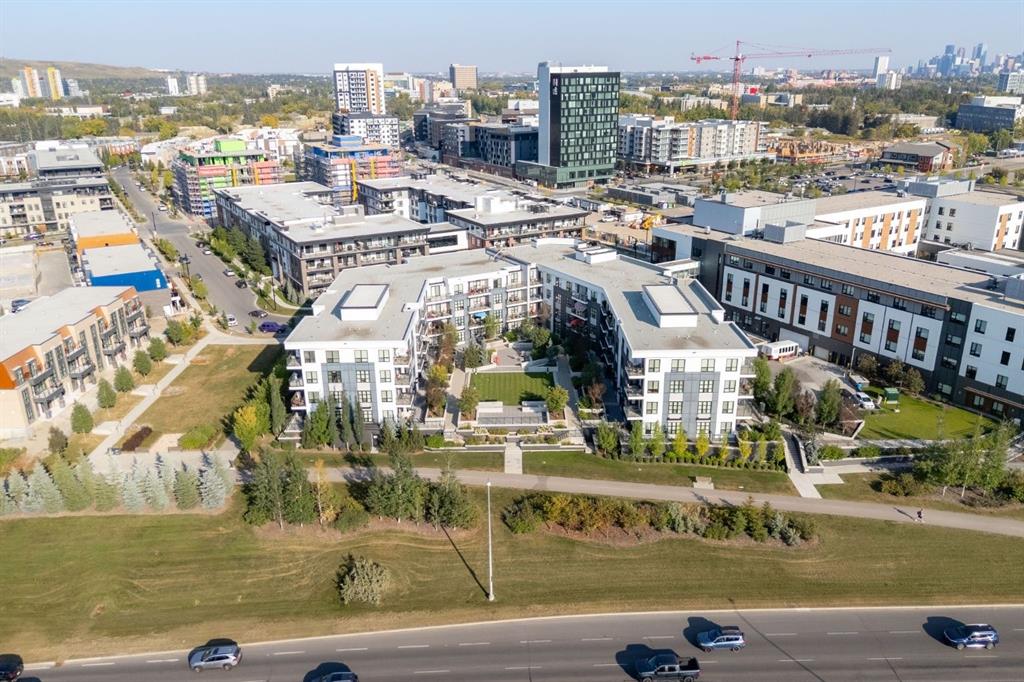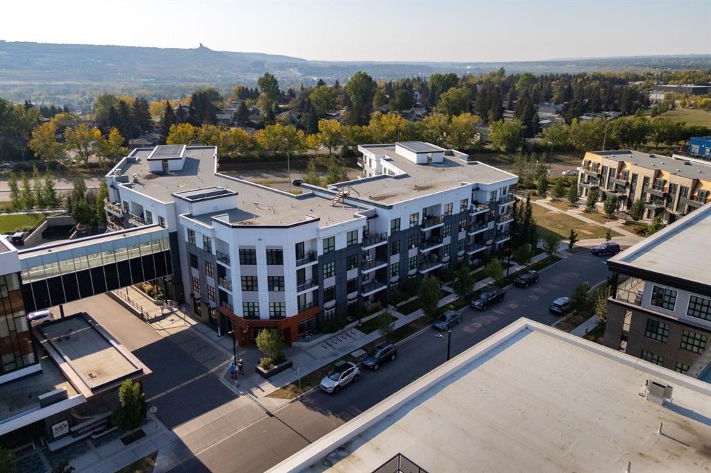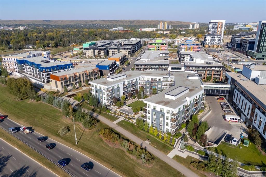 Enjoy maintenance-free living in this beautiful corner unit in the sought-after +55 Maple building, ideally located in Calgary’s vibrant University District. Built by Truman Homes, Maple offers a secure, comfortable, and social community surrounded by every amenity you could need—perfect for those ready to simplify life without sacrificing lifestyle. Life in the University District feels like living in a small town within the city. Everything is steps away—Save-On-Foods, Shoppers Drug Mart, banks, cafés, restaurants, and shops along lively Main Street. Load up your shopping caddy and enjoy running errands without ever needing your car. Designed with pedestrians in mind, the University District features wide sidewalks, curb ramps, benches, and scenic walking routes, making it easy and enjoyable to get around. With new shops and services opening all the time, this area continues to grow as one of Calgary’s most vibrant, walkable communities. The Maple building itself has been thoughtfully designed for “aging in place”, with wide hallways and entrances, barrier-free showers, and common areas that encourage connection. Residents enjoy heated underground parking, storage lockers, bike storage, and beautifully landscaped courtyard with inviting seating areas. Immediately adjacent to Maple is Cambridge Manor – a residence providing independent and supportive living services. Maple owners receive priority placement at Cambridge when additional care or services are needed, providing peace of mind for the future. Cambridge Manor also features a Bistro café, fitness centre, exercise classes, and an entertainment stage, which Maple residents can enjoy at their leisure. Inside Unit 315, you’ll find a bright, spacious, and functional layout that feels instantly like home. Many residents have downsized from larger homes and are delighted that most of their full-size furniture fits perfectly—from sofas, buffets, king beds, lounge chairs and dressers. There’s even room for personal touches like plants, artwork, and kitchen luxuries and the large covered private balcony offers ample space for potted plants, small container gardening, or relaxation. The unit features two bedrooms, positioned at opposite ends for privacy, two full bathrooms, 9-foot ceilings, and large windows that fill the space with natural light. The modern kitchen includes quartz countertops, stylish cabinetry, and energy-efficient SS appliances. The extended island with a built-in dining table is perfect for entertaining or cozy meals at home. The primary suite comfortably fits a king-sized bed and includes a walk-through closet and spa-inspired five-piece ensuite with double sinks and a spacious, barrier-free shower. The second bedroom makes an excellent guest room, hobby space, or home office—offering versatility to suit your lifestyle. Whether you’re seeking a secure home base while you travel or a vibrant, connected community to enjoy year-round, Unit 315 at Maple offers the best of both worlds.