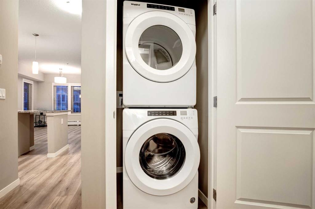 Stepping inside the Foyer, you’re greeted w/NEUTRAL Colours, 9 FT CEILINGS + UPGRADED Vinyl Plank Flooring that leads you down the hall; 4-PC Bathroom sits next to the 2nd GOOD-SIZED Bedroom – this split-bedroom layout is IDEAL for GUESTS, ROOMMATES, or a PRIVATE HOME OFFICE – w/a stacked WASHER/DRYER conveniently located across from the bathroom. Enjoy the OPEN-CONCEPT layout filled w/NATURAL LIGHT from your SOUTH + WEST FACING WINDOWS, + discover an array of UPGRADED FEATURES that truly set this home apart.