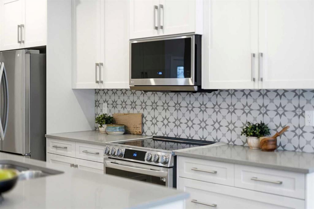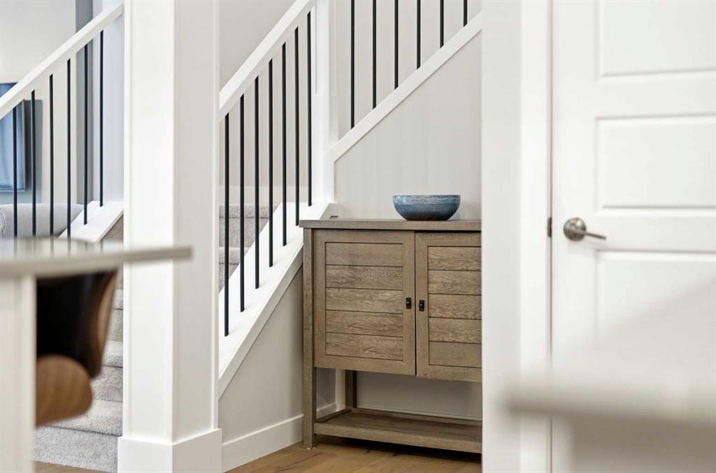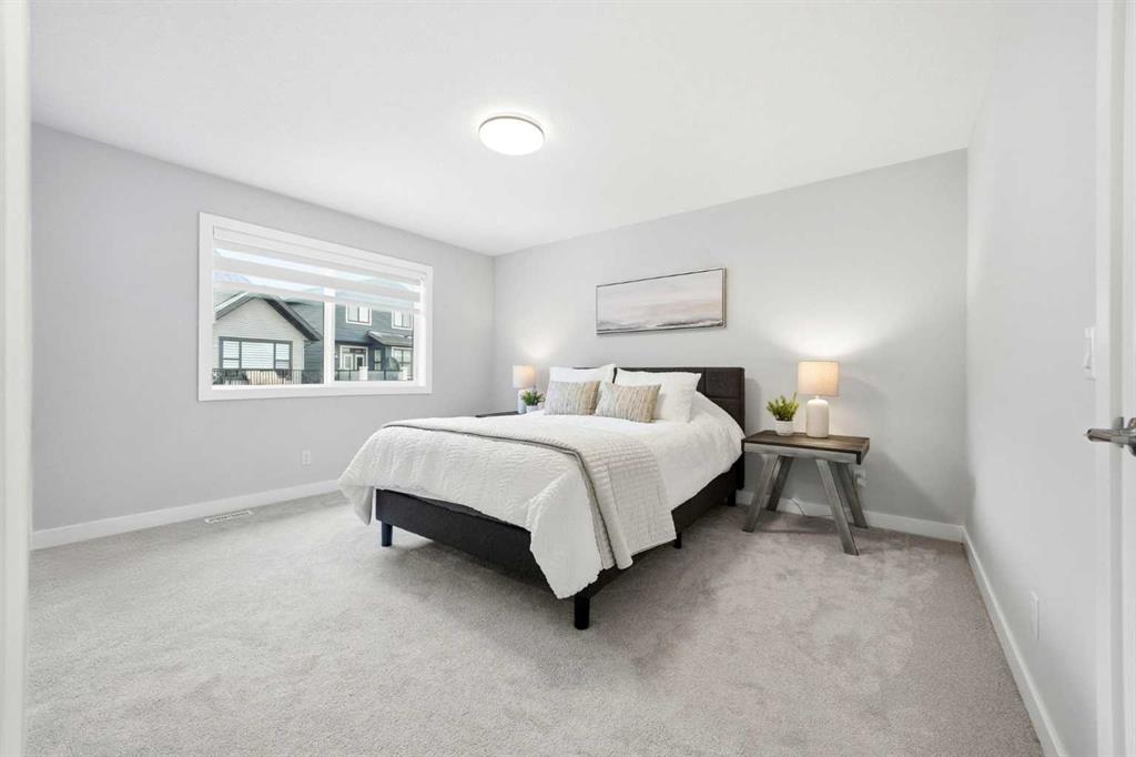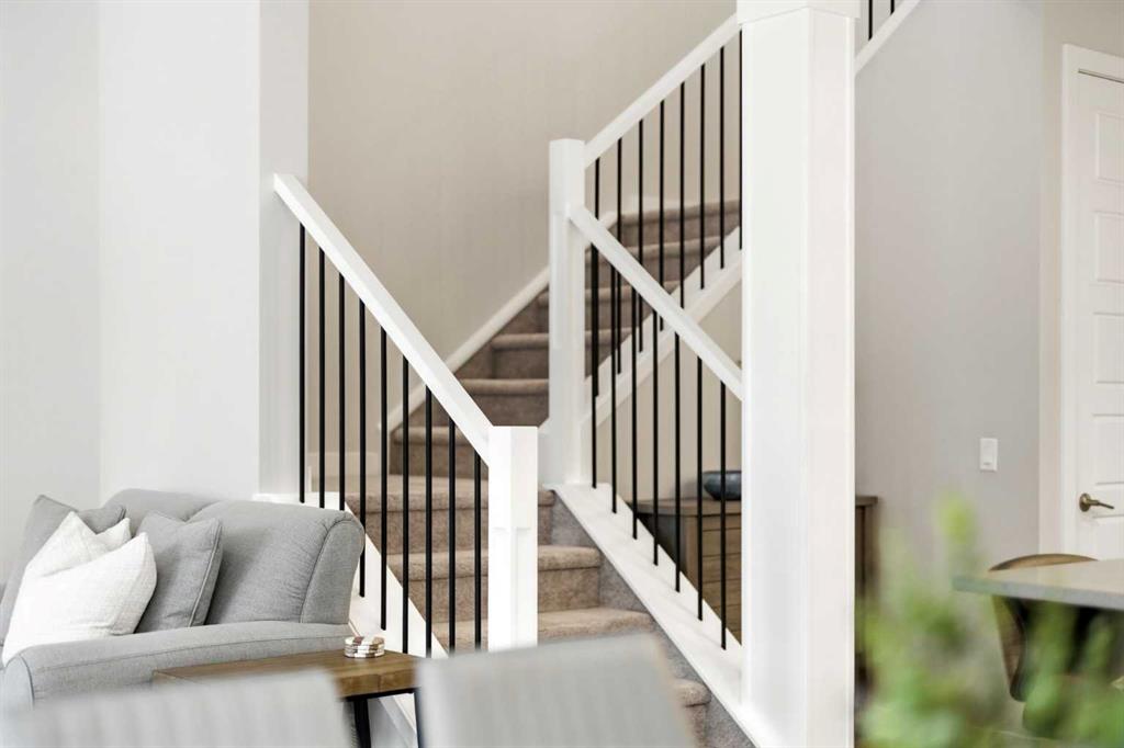 This duplex-style property is a rare offering in the elevated community of Precedence in Cochrane. Surrounded by stunning hillside views and kilometres of scenic walking paths, this neighbourhood seamlessly connects you to nature—leading throughout the community, down to the winding Bow River, and over to the popular Spray Lakes Recreation Centre. This location truly has it all. Offering tremendous value, this home is ideal for first-time buyers or those looking to downsize, complete with the convenience of a double attached garage. Step inside and immediately appreciate the gorgeous engineered hardwood flooring that flows throughout the main floor. The kitchen is bright, modern, and timeless, featuring crisp white cabinetry, stainless steel appliances, quartz countertops, a large island perfect for entertaining, and a walk-in pantry providing ample storage. The living room is anchored by a stylish electric fireplace, creating a warm and contemporary focal point. With plenty of space for family gatherings, the dining room also offers direct access to the large west-facing backyard. Outside, the newly built oversized composite deck is a standout feature—designed for durability and low maintenance. The yard has been thoughtfully finished with low-maintenance rock, allowing you to relax and enjoy the outdoor space all season long. A stylish open railing leads you to the upper level, where thoughtful design continues with a walk-in laundry room, two additional bedrooms or office spaces, and a full bathroom. The primary bedroom serves as a peaceful retreat, perfect for unwinding at the end of the day. It is complemented by a luxurious ensuite featuring dual sinks, quartz countertops, a spacious shower, and additional shelving, while a walk-in closet completes this well-appointed space. This home is truly turn-key, complete with custom window coverings and wand-controlled blinds throughout. The lower level is undeveloped and ready for your future vision, with a bathroom rough-in already in place. Don’t miss your opportunity to own this beautiful home in one of Cochrane’s most desirable communities—schedule your showing today!