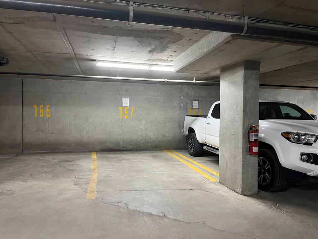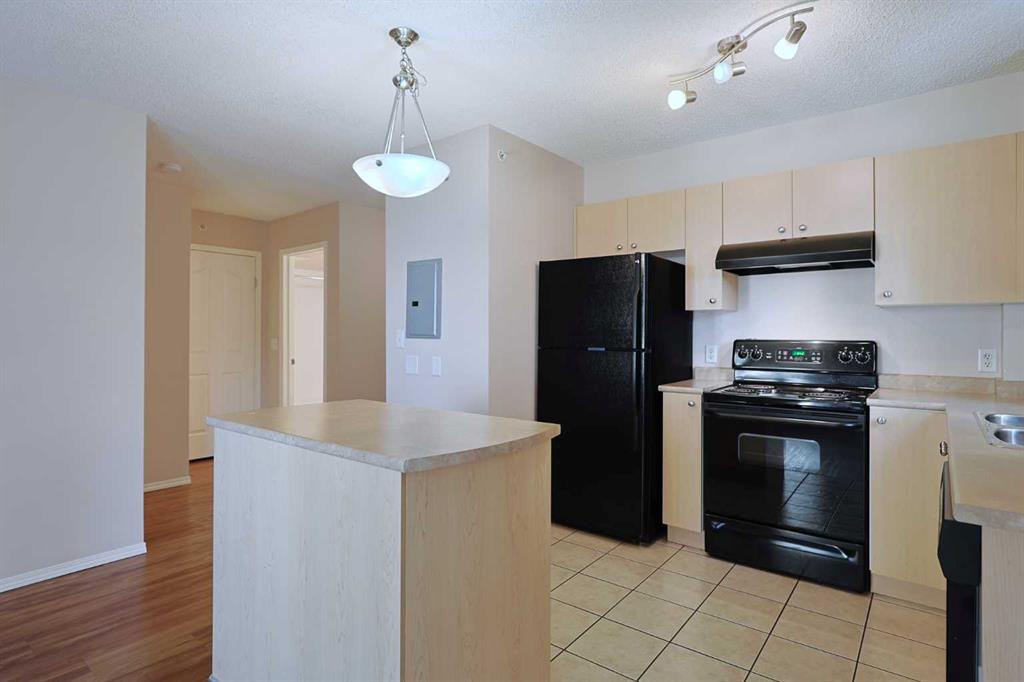 Welcome TARJAN PLACE & this terrific 1 bedroom condo in this popular concrete high-rise located in Downtown West End just steps to the Downtown West-Kerby LRT station, Cowboys Park & the Bow River pathway system. Available for quick possession, this 3rd floor end unit enjoys vinyl plank floors & open concept floorplan, 1 full bath, titled underground parking stall & residents amenities include fitness centre & onsite concierge. Maintenance-free living in this great-sized home, which features spacious kitchen with island & black appliances, large living room with big picture windows, covered balcony with gas BBQ line & insuite laundry/storage room with space-saving GE washer/dryer. The bedroom is an excellent size & is has a big closet. The bathroom has tile floors & shower/tub combo. Monthly condo fees in this 20-storey tower include heat, water-sewer & electricity, plus this pet-friendly building (with board approval) also has a concierge, bike storage & gym. The perfect home for the first-time homeowner or an investment, in this top-notch location with all the conveniences of urban living at your doorstep…shopping & restaurants, Kensington, transit & downtown!