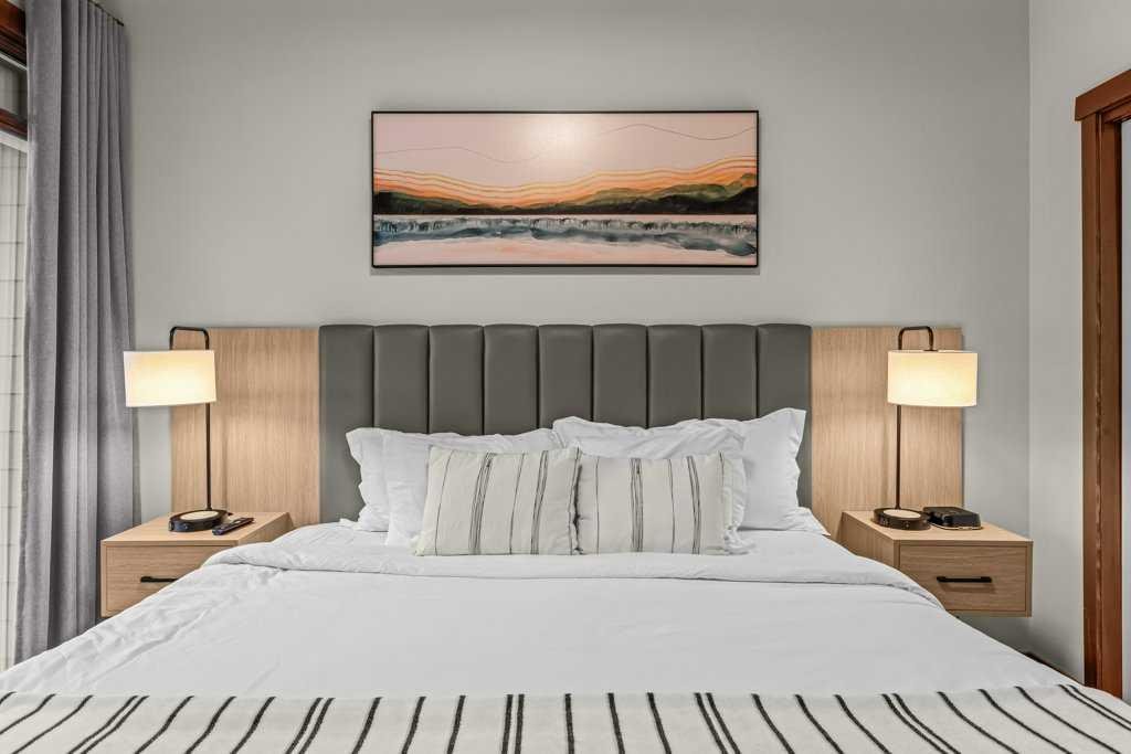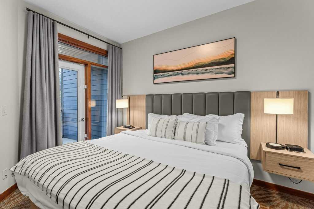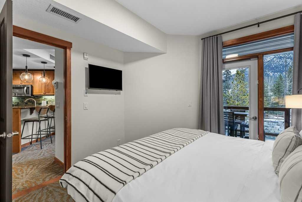 Enjoy the perfect mountain getaway in this beautifully updated suite, offering everything needed for a relaxing vacation. Prepare meals in the fully stocked kitchen, unwind by the cozy fireplace on the pull-out sofa, or take in pool and mountain views from your private patio. The suite features a spacious king bedroom with direct patio access, a full bathroom, and convenient in-suite laundry. Resort-style amenities include a heated outdoor pool, two hot tubs, fitness room, EV charging stations, underground parking with car wash, and a courtyard BBQ area — all designed to make your stay comfortable and memorable.