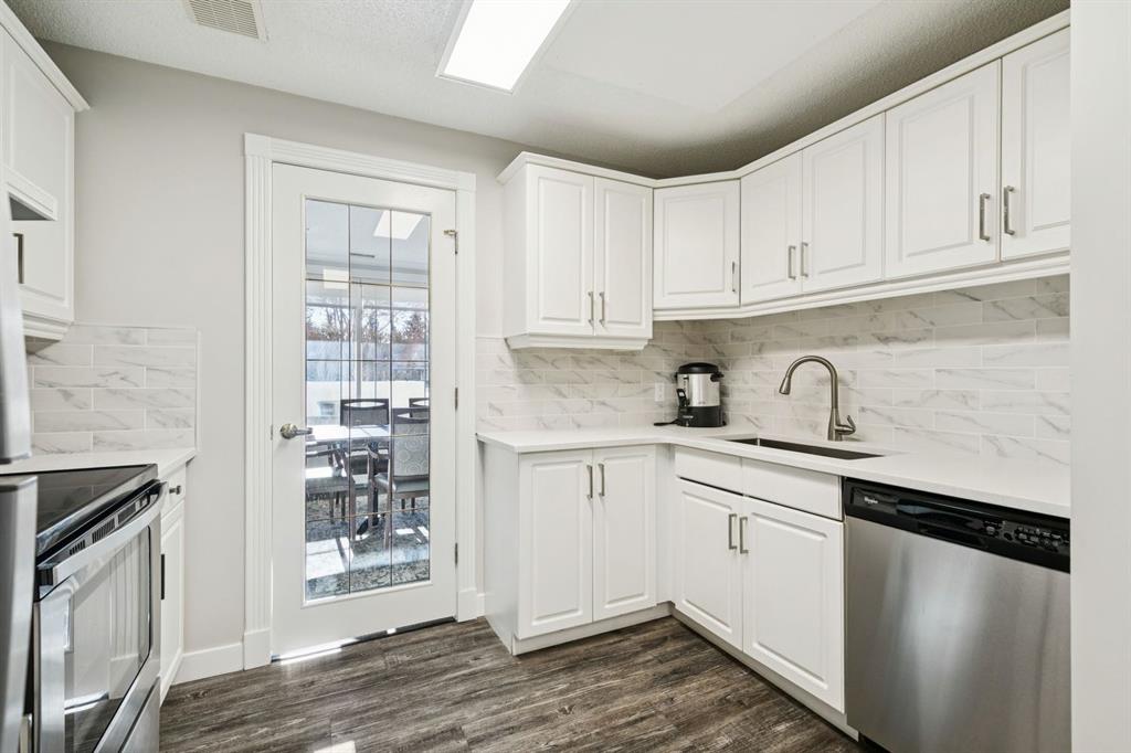 Enjoy peaceful, maintenance free adult living in the sought after community of Palliser at Courtyards West Park. This well managed condominium building offers a top floor, southwest facing home with a bright, open layout designed for comfort and ease, featuring two bedrooms, updated hardwood floors, and a spacious balcony with gas hookup overlooking the tranquil courtyard, perfect for morning coffee or relaxing evenings. A welcoming foyer leads to the formal dining area and a bright, thoughtfully designed kitchen with crisp white shaker style cabinetry, quartz countertops, raised breakfast bar for casual meals, pantry, and newer appliances. The generous living room easily accommodates both a comfortable seating area and a reading nook or home office, and features a cozy gas fireplace for year round enjoyment. Convenient in-suite laundry includes built-in storage, a folding counter, and ample space for a freezer, making daily routines effortless. Down the hall, you’ll find a full bathroom and two spacious bedrooms, including the primary. The primary retreat is a true sanctuary, offering a large sleeping area, walk-in closet, additional linen storage, and a private 4pc ensuite with a deep soaker tub and separate walk-in shower. This unit includes a titled underground parking stall and an assigned, secure caged storage unit, ideal for seasonal items. Residents of Courtyards West Park enjoy outstanding amenities, including a welcoming main floor gathering room with kitchen, library, and sunroom that opens to the beautifully landscaped courtyard, providing wonderful opportunities to socialize, host family, or meet neighbours. Ideally located near parks and walking paths, recreation facilities, Rockyview General Hospital, and the shops and cafés of Glenmore Landing, this well managed adult community offers a relaxed lifestyle with everyday conveniences close at hand.