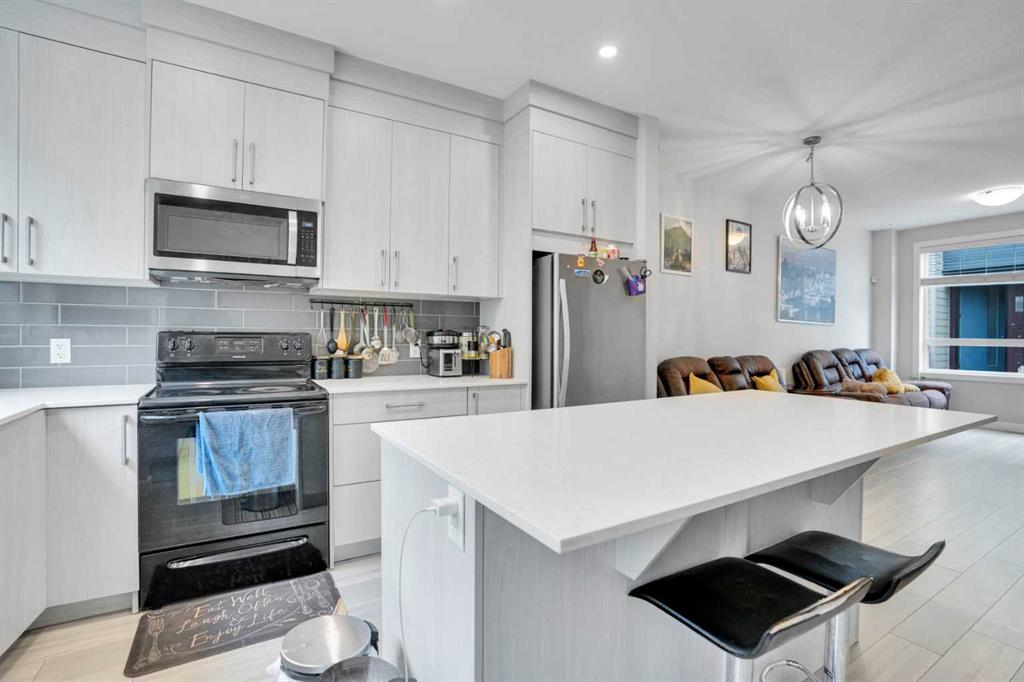 Welcome to this beautiful 1235 Sqft two-story townhome with the finished basement located in most desirable community of Redstone. The main floor welcomes you with a bright and open floor plan featuring a spacious living room, a formal Dinning area, a well-appointed kitchen and 2-piece bath. The gorgeous kitchen has stainless steel appliance, quartz countertops and Center Island. Upstairs, a rare dual Primary Suite layout has its own ensuite bath and large walk-in closets, perfect for families or multi-generational living. Basement is fully finished with 3rd Bedroom has a 4 Pc Ensuite, Recreational Area—great for guests, a home office, or a personal gym. It has a private backyard, dedicated parking stall, durable Hardie board exterior, and professional complex management. New K-4 elementary school is already approved in Redstone. This house is a few minutes drive to shopping plazas, all major highways, Cross iron mills, YYC airport and other amenities. Book Your Showings Today!