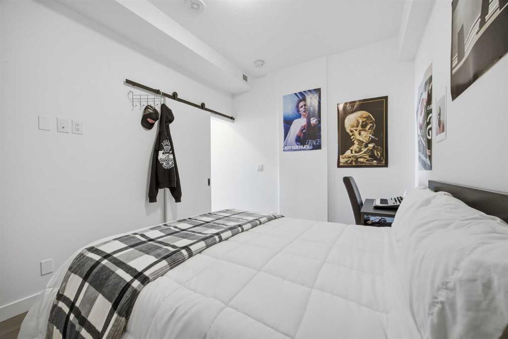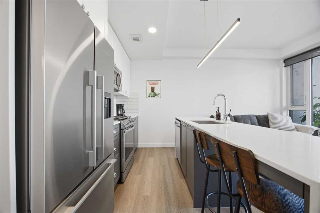 Welcome to your new home in The Annex, one of Kensington’s most desirable concrete buildings and Calgary’s first LEED Gold V4 Multifamily Midrise. Did we mention this building allows short term rentals – a rare and strong investment opportunity. You can keep it as a long term rental, turn it into an Airbnb, or move in and enjoy the inner city lifestyle yourself. What makes this home stand out is the ground floor, street level entrance. It creates a boutique hotel feeling that guests love and offers unmatched convenience with no elevators and no long hallways. It is one of the most desirable and unique layouts in The Annex. Inside, the layout is bright and modern with 9 foot ceilings, floor to ceiling windows, and a clean, open design. The kitchen features quartz countertops, a gas range, sleek cabinetry, and premium Fisher and Paykel stainless steel appliances. The living area is well designed and easy to furnish, creating a comfortable space for relaxing or entertaining. The bedroom is positioned at the back of the unit for privacy and features a large closet. There is also a four piece bathroom and convenient in suite laundry. This property includes titled underground parking and a titled storage locker, which adds excellent value in this vibrant inner city community. Residents also enjoy access to an outstanding rooftop patio with panoramic downtown views, BBQ stations, fire features, lounge seating, a community garden, and a dog run. It is one of the best shared spaces in the area. Living in Kensington means everything is at your doorstep. The Bow River pathways are also just minutes away. This ground floor unit offers a rare blend of style, convenience, and investment potential in one of Calgary’s most walkable neighbourhoods. It is an excellent opportunity for a first time buyer, investor, or anyone looking for easy inner city living.