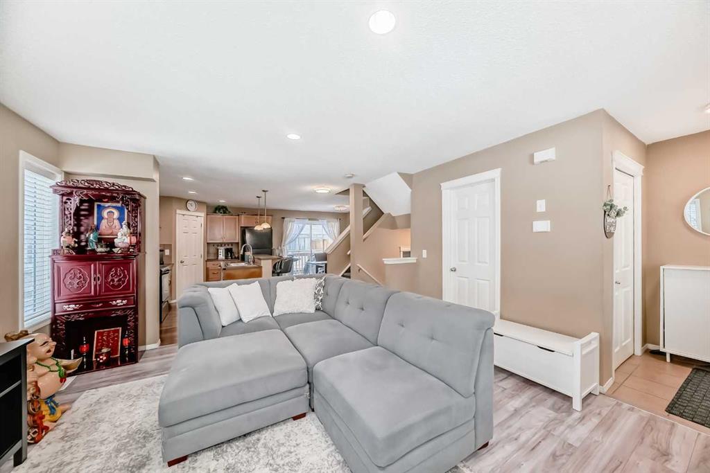 Pride of ownership is evident throughout this fully renovated end unit townhome in the desirable community of Country Hills Village. Offering 4 bedrooms and 3.5 bathrooms, this home features a bright and functional open concept main floor with high ceilings, new flooring, and large windows that provide an abundance of natural light. The spacious kitchen is equipped with premium appliances, ample cabinetry and counter space, a corner pantry, and a large breakfast bar that overlooks the living room and separate dining area with access to the expansive rear deck, ideal for entertaining. A generous front entry and convenient 2pc bathroom complete the main level. Upstairs, the oversized primary bedroom includes a walk-in closet and a 4pc ensuite. Two additional bedrooms, a full 4pc bathroom, and new carpet complete the upper level. The fully developed basement (completed with permits) offers a spacious family room, a fourth bedroom with a 3pc ensuite, as well as a laundry area and extra storage. Additional features include a large front porch and two titled parking stalls located directly in front of the unit. Conveniently situated close to schools, parks, public transit, shopping, restaurants, and with easy access to major roadways.
