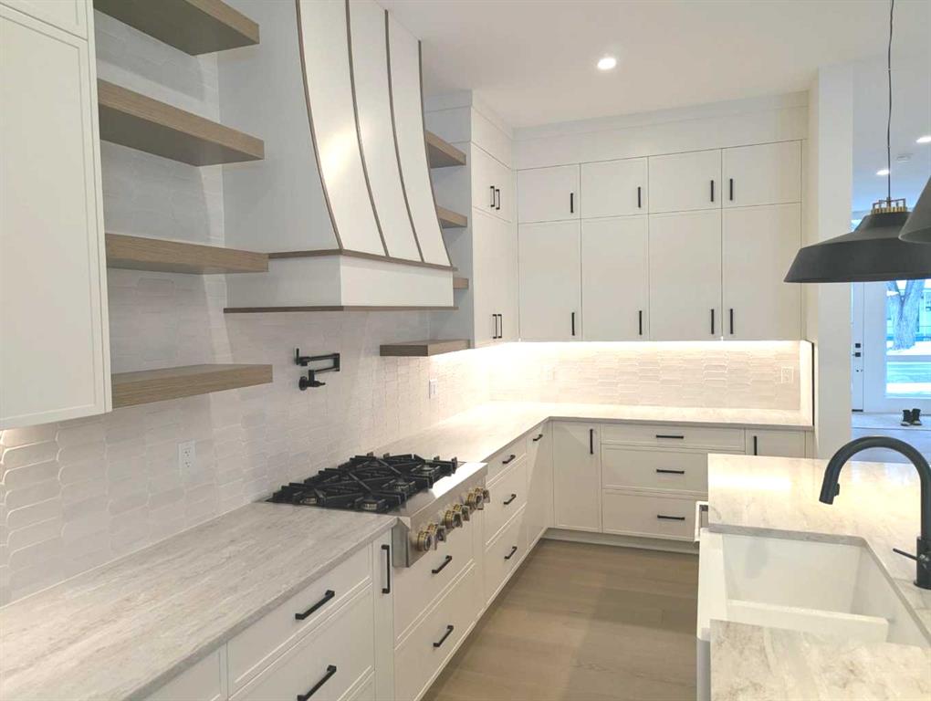 Proudly presenting “The Anya” – an Elegant and Luxurious Residence located in the heart of sought-after Hillhurst. Situated a short stroll to vibrant Kensington Village & the Bow River Pathway System, this modern one-of-a-kind custom family home is a model of quality, craftsmanship & artistry. Masterfully constructed, “The Anya” offers 4,650 SF of exquisitely designed living space showcasing estate-level features including 6 bedrooms, 6 bathrooms (4 ensuites), 2 laundry rooms, a WALK-OUT BASEMENT & TRIPLE GARAGE. The meticulous layout provides generous living spaces & lifestyle flexibility ideal for multi-generational living & aging-in-place. The stunning main floor boasts an abundance of glass allowing natural light to flood the open-concept kitchen, dining, & living areas. The gorgeous kitchen combines beauty & function featuring sophisticated micro-shake cabinetry by an award-winning millwright, Jenn Air appliances, premium quartz countertops & backsplash, striking white rift-cut oak island & walk-in pantry. The dining room’s dramatic chandelier & living room’s sleek fireplace further elevate this inspired space. A versatile front room provides a welcoming space for a cozy workstation or additional storage while a 2nd front flex room is a special offering ideal as a sitting room, home office or library & when needed as a bedroom complete with full ensuite & walk-in closet. A convenient powder room, laundry room & mudroom complete the main floor. A graceful white oak staircase leads to the upper level where two secondary bedrooms each enjoy a private ensuite & walk-in closet. The serene primary suite offers a beautifully customized closet & a spa-inspired ensuite with dual vanities, steam shower, in-floor heating & opulent stand-alone tub. A lovely bonus room & 2nd laundry room with sink, folding counter & linen storage perfect this outstanding family level. The WALK-OUT lower level provides 1,500+ SF of bright, functional space including a large family room with stylish wet bar, glass-enclosed gym, a 5th & 6th bedroom, 6th bathroom & a well-designed mudroom with built-ins & walk-in closet offering direct access to the backyard & TRIPLE GARAGE. The impressive exterior displays timeless modern architecture highlighted by expansive windows, James Hardie cladding, corrugated metal & Casa Blanca stone accents. “The Anya” is truly a residence where luxury, lifestyle & comfort unite delivering an extraordinary setting for hosting, relaxing & living beautifully both indoors and out. Ideally located just steps from parks, trendy restaurants, cafés & boutiques, this home offers a tranquil retreat within the vibrant Kensington district. Proximity to the Bow River, downtown, Queen Elizabeth High School, the U of C, SAIT, Foothills Hospital, Memorial Drive & Crowchild Trail highlights the property’s outstanding location. Expected completion of this remarkable property is by December 31, 2025.. Additional bonus: FIVE new trees will be planted in the backyard.