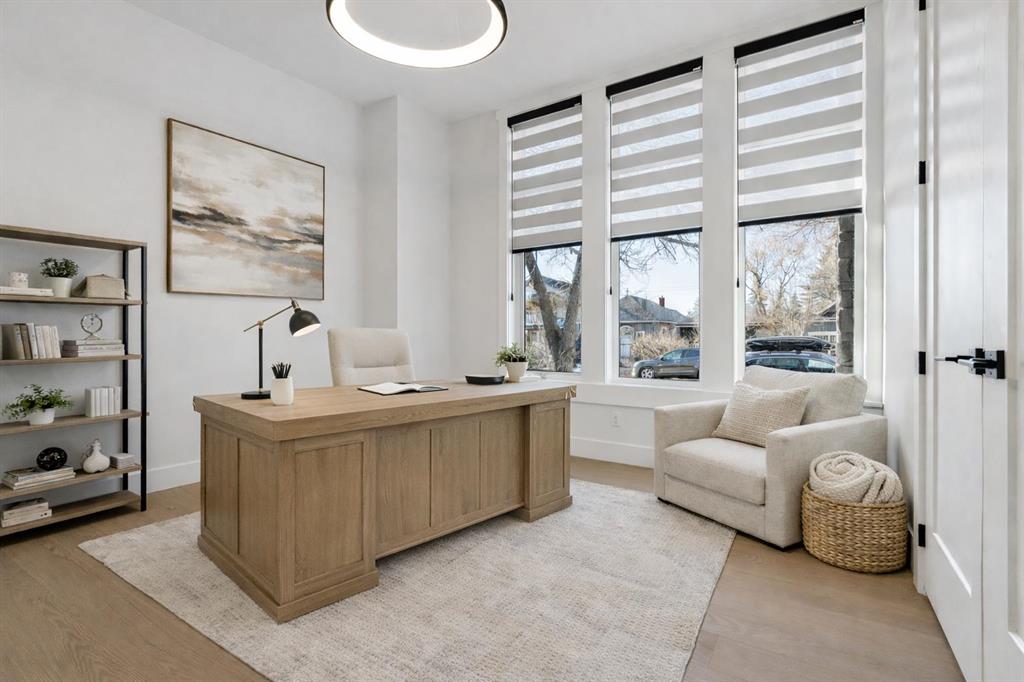 Tucked into a well located and established pocket of Hillhurst, this ELEGANTLY CRAFTED custom-built home offers elevated inner-city living just steps from Kensington, the Bow River pathway system, parks, dining and everyday amenities. Offering over 4,500 ft² of meticulously finished living space, this home is designed for modern family living and long-term lifestyle flexibility, featuring 6 bedrooms, 6 bathrooms, a walk-up lower level and insulated TRIPLE GARAGE with vaulted ceiling.