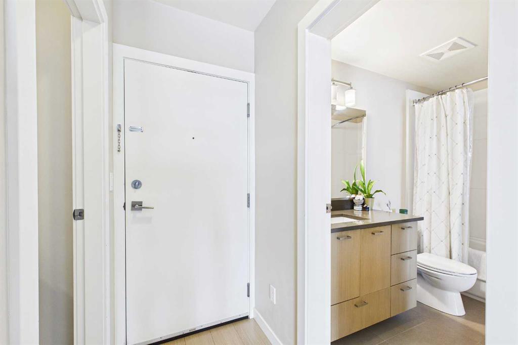 Experience the pinnacle of inner-city living in this stunning one-bedroom, one-bathroom sanctuary located in the prestigious community of Renfrew. Designed for the discerning urbanite, this condo blends contemporary elegance, convenience, sophistication and boasts a perfect view of Calgary’s downtown skyline. Modern Design & Finish with a minimalist vibe. Step into an open-concept layout defined by sleek, contemporary finishes and a sophisticated palette. The chef-inspired kitchen features flat-panel cabinetry with soft close precision, gas cooktop, premium stainless steel appliances, chunky shelves and sprawling polished quartz countertops that serve as both a culinary workshop and social centrepiece seamlessly flowing into a bright and airy living space. High ceilings and wide-plank flooring enhance the modern aesthetic, creating a home that is as functional as it is beautiful. The hidden gem of this residence is the unobstructed, panoramic view of the downtown skyline from either your bedroom or your main living space, its spectacular! Oversized windows flood the interior with natural light from the Southwest-facing balcony. Whether you’re sipping your morning coffee or hosting evening cocktails, you’ll have a front-row seat to Calgary’s most spectacular sunsets and the glittering lights of the city core. Minutes from the downtown core your commute will be short and your walks will be long as you stroll along our mighty Bow River and pathways system. Living in this building means enjoying a suite of premium amenities designed for a high-performance lifestyle. Skip the gym membership and stay active in the well-equipped, on-site gym. Convenient in-suite laundry and storage. Keep your vehicle secure and warm year-round in the heated parkade that includes a dedicated locker for your seasonal gear and outdoor equipment as well. Bike storage, visitor parking and we cant forget our furry friends a DOG and or CAR WASH. Renowned for its “small-town” feel with big-city proximity, Renfrew offers an unparalleled lifestyle. You are steps away from the trendy bistros of Edmonton Trail and 1st ave amenities, the lush pathways of Tom Campbell’s Hill, and a quick commute to the downtown core via bike, transit, car or a stroll. This is more than just a condo; it’s your private retreat above the city. Schedule your private showing today and see why Renfrew is the place to be in 2026.