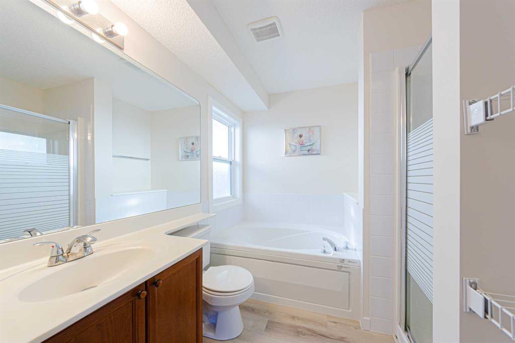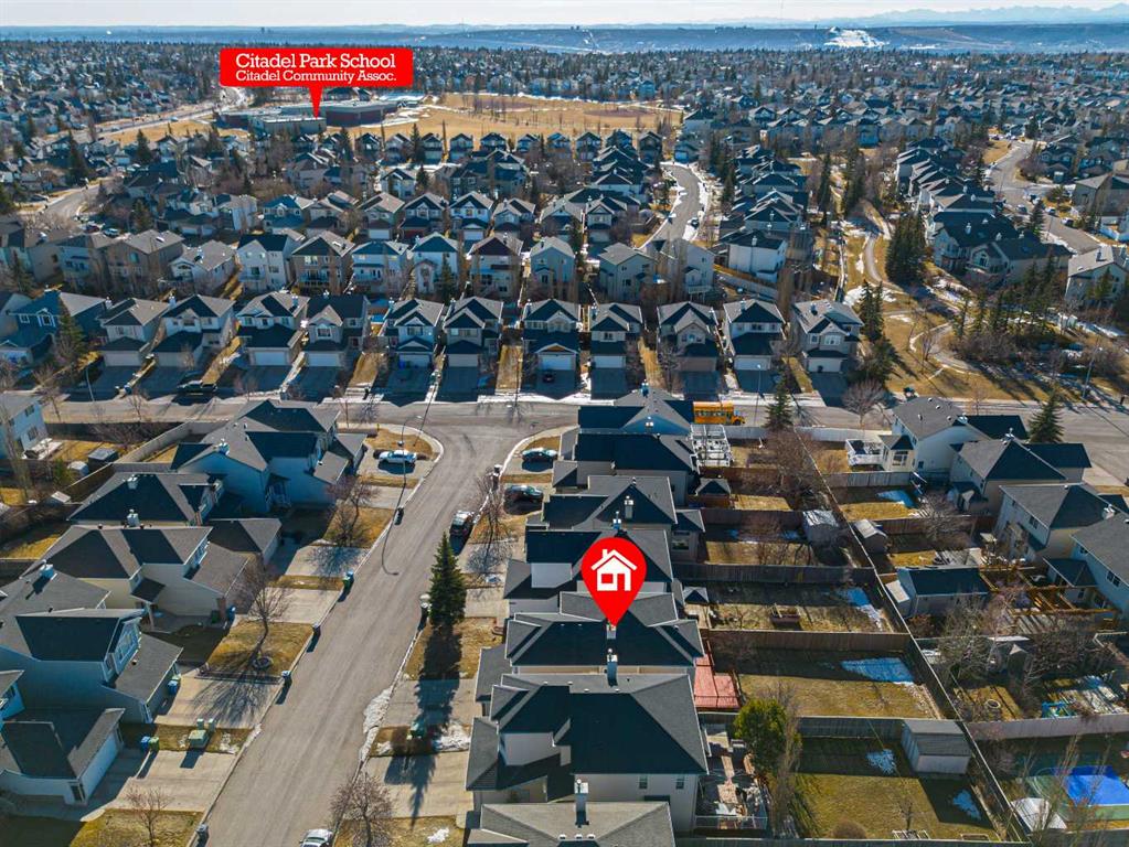 HOME SWEET HOME! Located on a quiet, well-established street in Citadel is this well-maintained two-storey house built in 2001. Offering 1,956 sq. ft. of living space, this home is ideal for families seeking both comfort and convenience. Through the front porch enters main floor, you will find a flex room with a floor to ceiling window, a laundry room off garage, a thoughtfully designed half bath around the corner of stairs, and an open airy great room which combines kitchen, family room and dinning room. All updated with brand new LVP vinyl plank flooring & fresh paint throughout. There is a newly installed vanity in the half bathroom. Up to the second floor, you will find a handy 4pcs bathroom right at the top of landing area. A bonus room with vaulted roof and corner gas fireplace is perfect for a movie night or family gathering. Few steps ahead, you will find 3 well designed bedrooms, including a super sized master bedroom…with 4pcs master ensuite and a WIC. A king size bed is easy to fit in this room. Lots of storage in partially finished basement (drywalled) which can be your next to-do-list. All major components have been carefully maintained over the years, including roof (approx. 10 years old), recently serviced furnace (duct cleaning done 2026), and hot water tank (2023). Other improvements like dishwasher (2024), washer & dryer(2025) add to the home’s move-in-ready appeal. Set within a family-friendly community, the property is within walking distance to a local elementary school and just minutes from everyday amenities include Costco, Superstore, Home Depot, banks, dental clinics, pet services, as well as parks, sports, and recreational facilities… truly a rare opportunity to enjoy a peaceful neighborhood with both convenience and accessibility. Available for quick possession!
