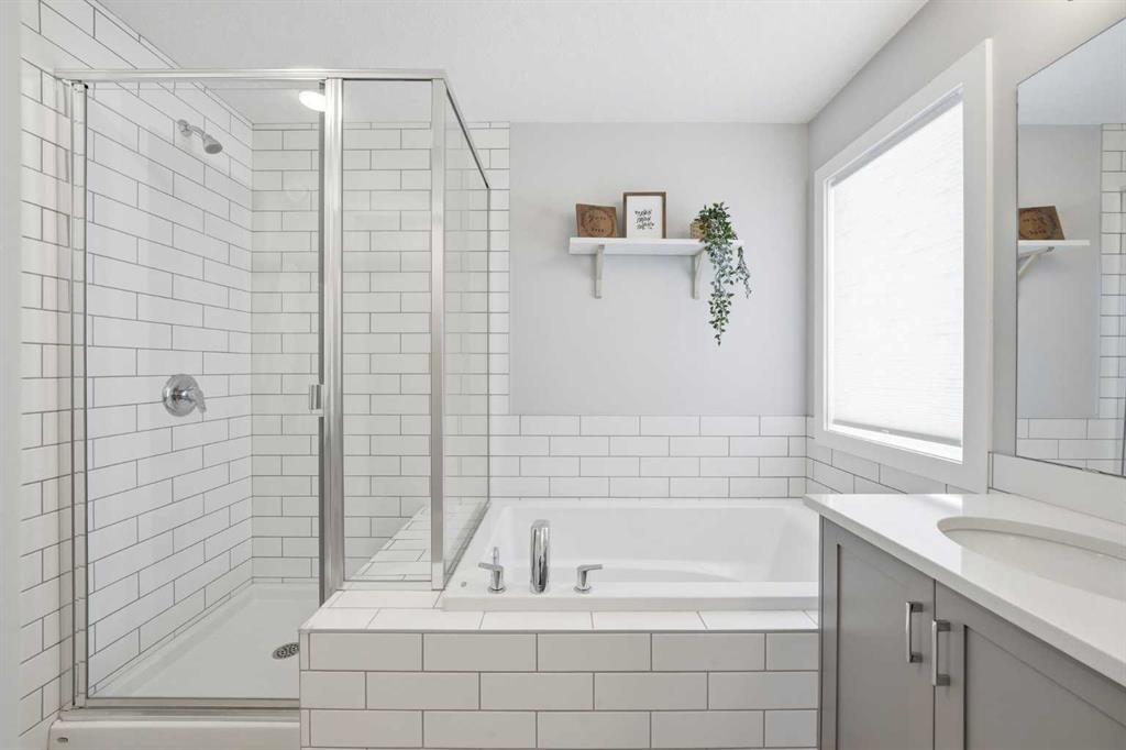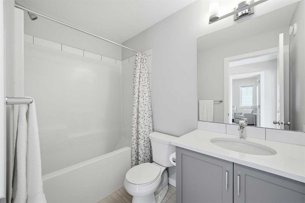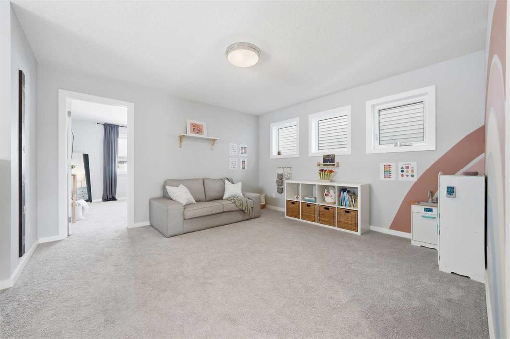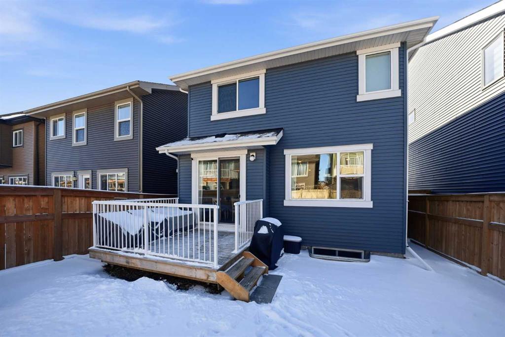 OPEN HOUSE Sunday, March 15th from 12:00-2:00 pm- Welcome to this beautifully maintained, move-in ready family home located in a quiet location just steps from a playground in one of Cochrane’s most sought-after neighbourhoods! With the convenience of K–Grade 8 at nearby Ranchview School, this location is ideal for growing families. Step inside to a warm and inviting main floor featuring rich wood-tone vinyl plank flooring and bright, modern finishes that create a calm and welcoming atmosphere. The stunning kitchen is the heart of the home, showcasing upgraded appliances including a gas stove and ceiling hood fan, quartz countertops, and a large island that’s perfect for gathering, entertaining, and everyday meal preparation. A spacious walkthrough pantry connects seamlessly to the mudroom, complete with built-in lockers to keep the family organized and convenient access to the main floor powder room and the garage which has been insulated, drywalled and finished with textured white walls. The open-concept living and dining areas create a comfortable space for both daily living and hosting friends. Sliding glass doors lead to the spacious backyard and deck with a gas line roughed in for your BBQ—perfect for summer entertaining while the kids play and you relax and enjoy the sunny outdoors. Upstairs, a centrally located bonus room offers excellent flexibility and is currently set up as a children’s play space but could easily function as a media room or additional family lounge. Just off the bonus room is a cozy office nook—an ideal tucked-away workspace. The primary suite provides a peaceful retreat with a spacious walk-in closet and a beautifully finished five-piece ensuite featuring dual sinks, quartz countertops, a deep soaker tub, and a separate tiled shower—the perfect space to unwind after a long day. Two additional bedrooms, each with their own walk-in closets, a full bathroom with quartz countertops, and a generously sized laundry room with extra storage space complete the upper level. The unfinished lower level is ready for your future plans, already equipped with a bathroom rough-in and plenty of space for additional living areas. Located in a vibrant community known for its pathways, parks, schools, and central pond, you’ll also enjoy convenient access to nearby amenities including restaurants, pharmacy services, and medical clinics. An exceptional home offering comfort, function, and a quiet family-friendly location—book your showing today!