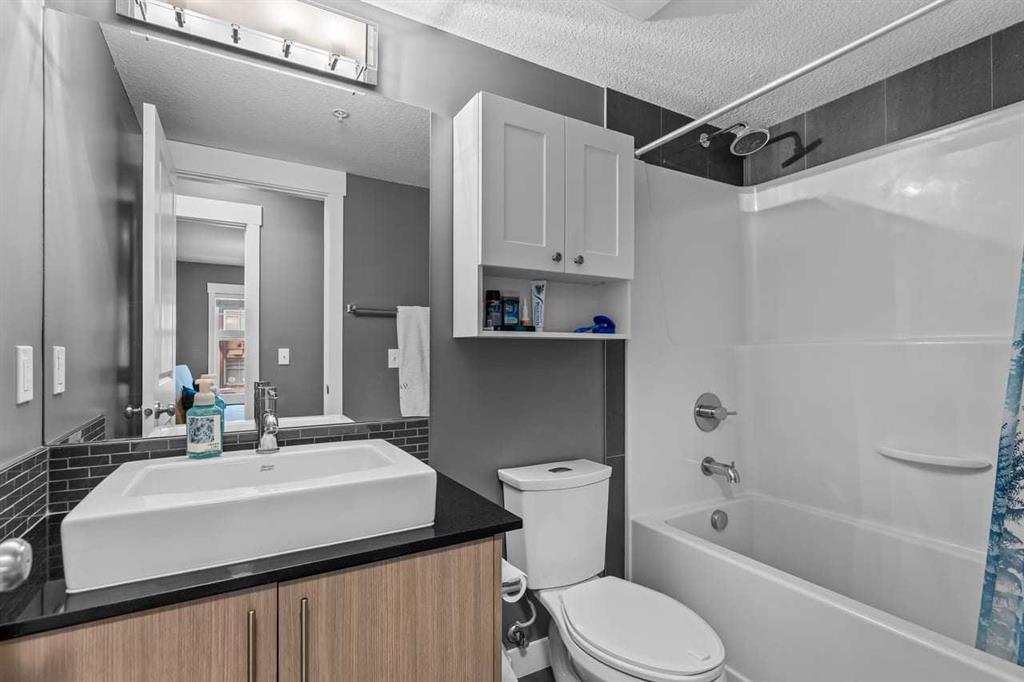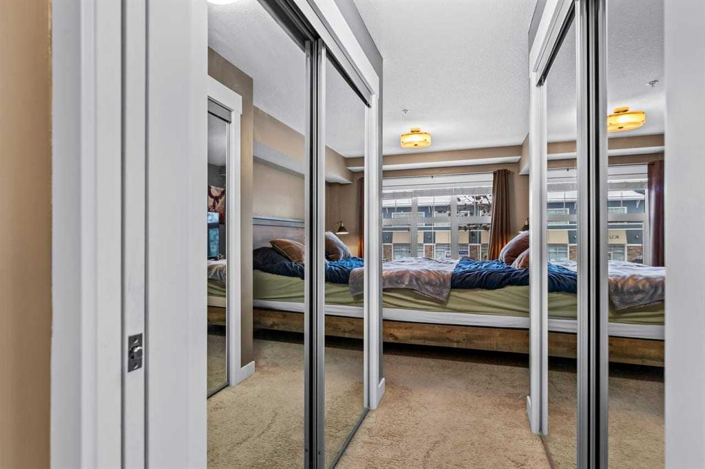 Welcome to life in the vibrant, four-season lake community of Mahogany! This beautifully designed 2nd-floor condo offers an ideal blend of comfort, style, and convenience, featuring 2 bedrooms, 2 full bathrooms, a private den, underground parking, and a separate storage locker. Step inside and you’ll immediately appreciate the open-concept layout, thoughtfully arranged to maximize both functionality and flow. The generous living and dining areas easily accommodate a full-sized dining set and large living room furniture—perfect for hosting friends or enjoying cozy nights in. The kitchen is finished with granite countertops, stainless steel appliances, rich cabinetry, designer colour palettes, and an eye-catching dining room light fixture that adds a touch of elegance. Just off the main living area, a dedicated office/den creates the perfect spot for working from home or organizing personal projects. This space leads to a spacious laundry room, offering exceptional in-suite storage and practicality. The two bedrooms are thoughtfully positioned on opposite sides of the unit, providing privacy for families, guests, or roommates. The primary bedroom features a walk-through closet and a 4-piece ensuite bathroom, while the second bedroom offers a walk-in closet and easy access to the second full bath. Large windows throughout the unit invite an abundance of natural sunlight, giving the home a bright, welcoming atmosphere. Step outside onto the generously sized balcony, perfect for morning coffee, evening relaxation, or container gardening through the warmer months. Additional perks include a heated underground parking stall, a large storage locker, and access to Mahogany’s renowned year-round lake amenities—from swimming and beach days in summer to skating in the winter. All of this is just steps away from Mahogany’s bustling shopping district, grocery stores, restaurants, schools, the South Health Campus, and countless everyday amenities. With low condo fees of only $497/month, covering everything except electricity, this home offers tremendous value in one of Calgary’s most sought-after communities. A wonderful place to live, relax, and truly call home.