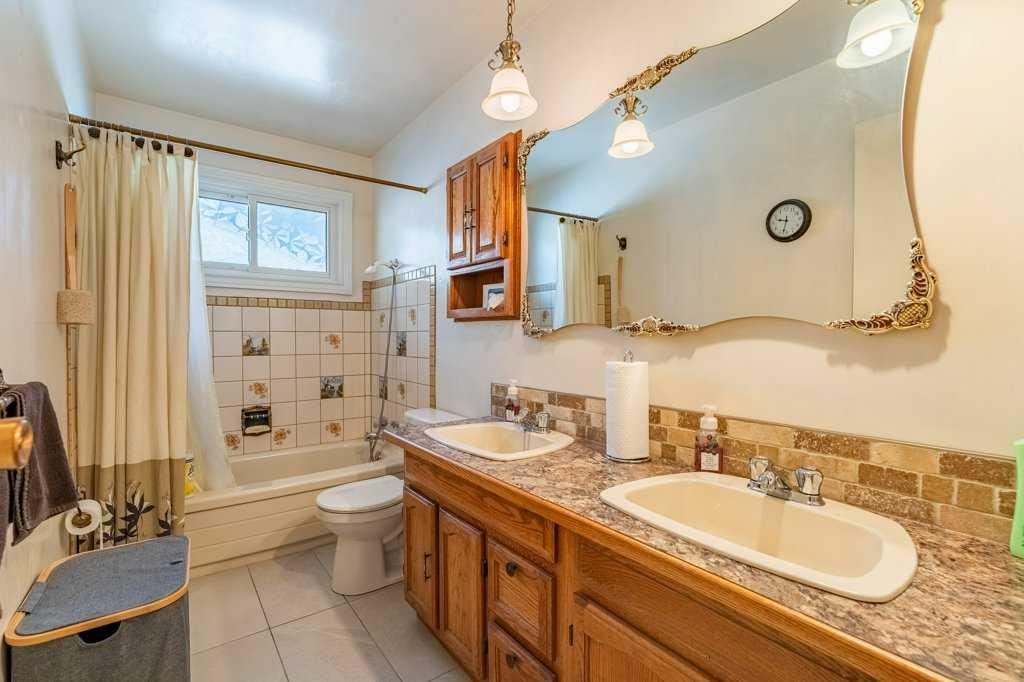 The upper level is finished with three generously sized bedrooms and a 5-piece bathroom with double sinks, offering plenty of space for family living.