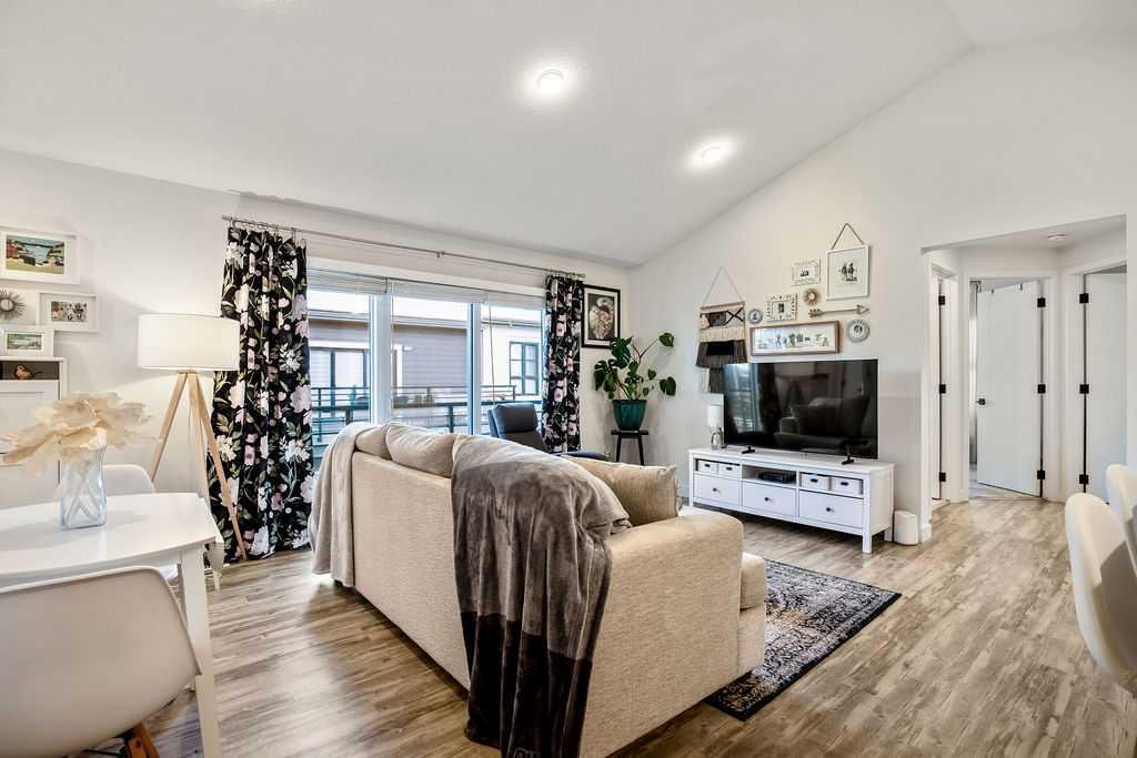 Modern Living in the Heart of Walden! This stylish Avi-built, 3-bedroom, 2-bath townhome offers over 1,176 sq ft of thoughtfully designed space—all on one level, a unique feature that highlights the smart and efficient layout – and loads of upgrades including Air Conditioning. Newly built in 2021, you’ll enjoy contemporary finishes throughout, including vaulted ceilings, vinyl plank flooring, stainless steel appliances, and a smooth-top range(there is a gas line also!) in the sleek, open-concept kitchen. The bright and functional layout is perfect for both relaxing and entertaining. The primary suite is a true retreat, featuring a luxurious ensuite with dual sinks and walk-in closets. Soak up the sunshine on the expansive west facing 170 sq ft deck, complete with low-maintenance Duradek finishing and a built-in gas line ready for your favorite BBQ. Set in a friendly community, this home is just steps from parks, scenic pathways, schools, and local shopping—and just a short walk to the ridge. With quick access to Stoney Trail, you can be out of the city and on your way in minutes. The large attached 22.5’ x 20’ finished and heated garage with slat wall to keep it all organized adds a polished touch to this already impressive home in one of Calgary’s most walkable and well-connected communities. Contact your favorite realtor today to schedule your viewing!