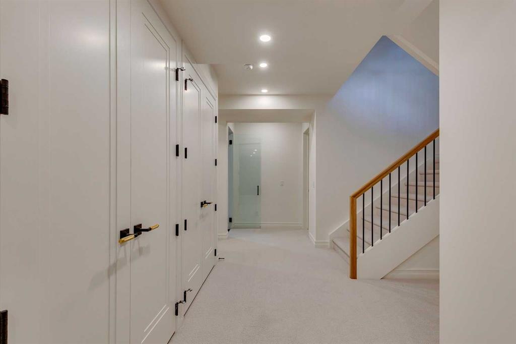 Sen Homes presents a stunning new estate home in the prestigious community of Upper Mount Royal, crafted to the highest standards and ready for occupancy. WITH 4,383 sq.ft. of meticulously developed living space, this home features three spacious upstairs bedrooms, each with walk-in closets and luxurious en-suites equipped with heated floors; the primary suite includes a steam shower and dedicated makeup counter. The main floor is thoughtfully designed with a custom mudroom, butler’s pantry, private office, formal dining room, and an open-concept kitchen and living area. White oak hardwood flooring spans the main and upper levels, with hardwood accents continuing into the basement. Premium finishes include solid core doors and extensive custom millwork such as office built-ins and a coffee station in the primary suite. The fully developed lower level boasts a gym, an additional bedroom, a full bathroom, smart strand silk carpet and a generous recreation area complete with a stunning wet bar. Noteworthy highlights include European-style black-framed tilt-and-turn windows, in-floor heating in the basement, elegant architectural arches, updated hardware throughout, and more. Situated on a quiet, tree-lined street with a sunny west-facing backyard, the outdoor space includes a large deck with two gas lines (for BBQ and fire table/heater) and an oversized double garage that is insulated, drywalled, painted, & heated—this home is the epitome of luxury and function in one of Calgary’s most sought-after neighborhoods.
