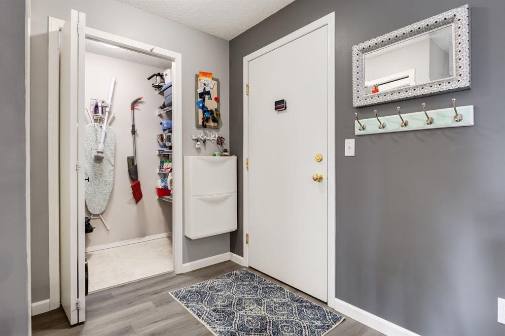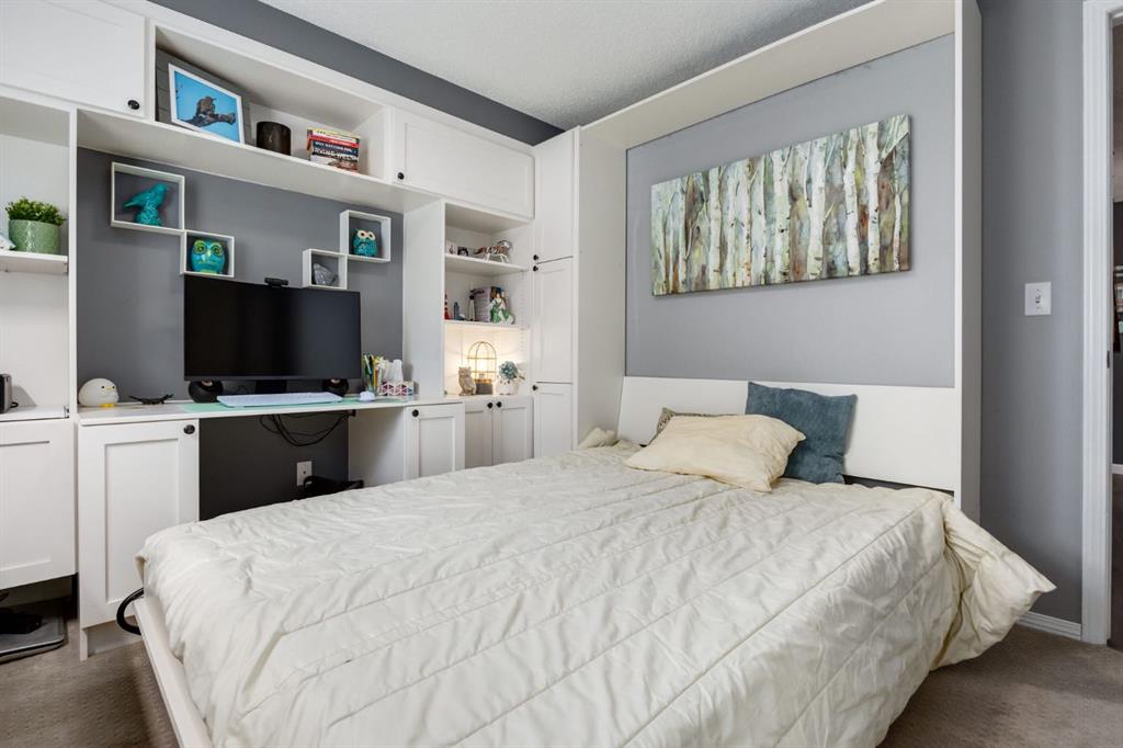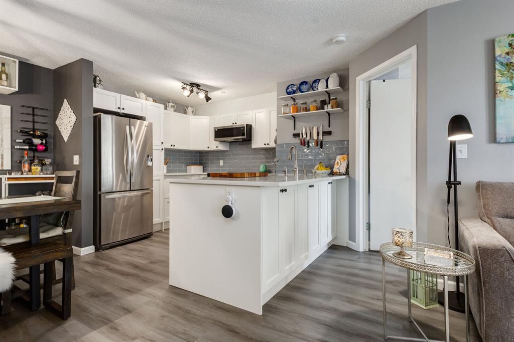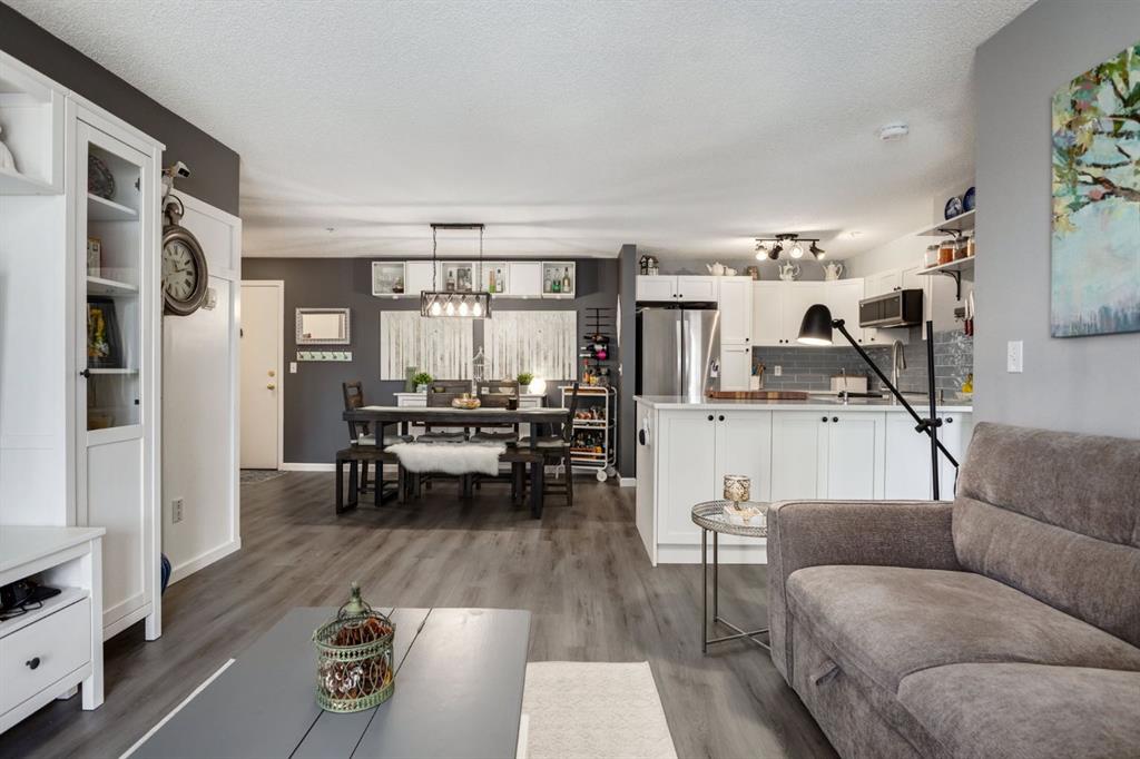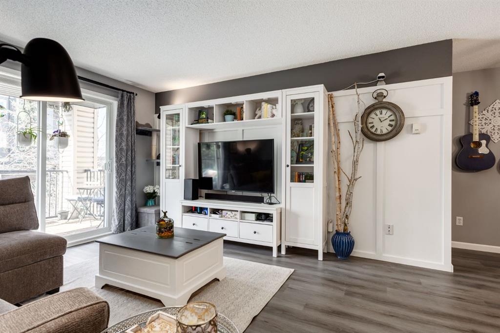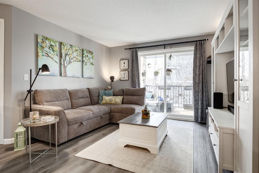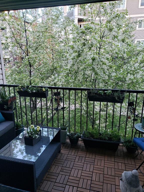 Welcome to this bright & stylish 2-bed, 2 bath condo in Mckenzie Towne that includes a titled underground parking stall & backs onto a lovely treed green space. The kitchen has been totally renovated with custom cabinets, elegant quartz countertops, an undermount sink & a stylish backsplash. You will appreciate the convenience of the pantry & spice pullouts, a Lazy Susan corner cabinet, 2-tiered utensil drawer & garbage & recycle pullout bins. Attractive stainless steel appliances include an electric stove and microwave hood fan that are only a year old. Newer premium vinyl flooring and updated lighting throughout. The roomy primary bedroom has a walk-through closet & 4-pc ensuite. The light-filled second bedroom is carpeted & enjoys the convenience of a custom Murphy bed, a built in desk, bookshelves and storage cabinets. The large in-suite storage room has plenty of room for shelving & a stacked washer (brand new) & dryer. Electricity is included! Close to schools, playgrounds, grocery stores, restaurants, the services at South Trail Crossing and transit. Easy access to 52 street, the Deerfoot & Stoney Trail. Don’t wait to book an appointment, you don’t want to miss this one!