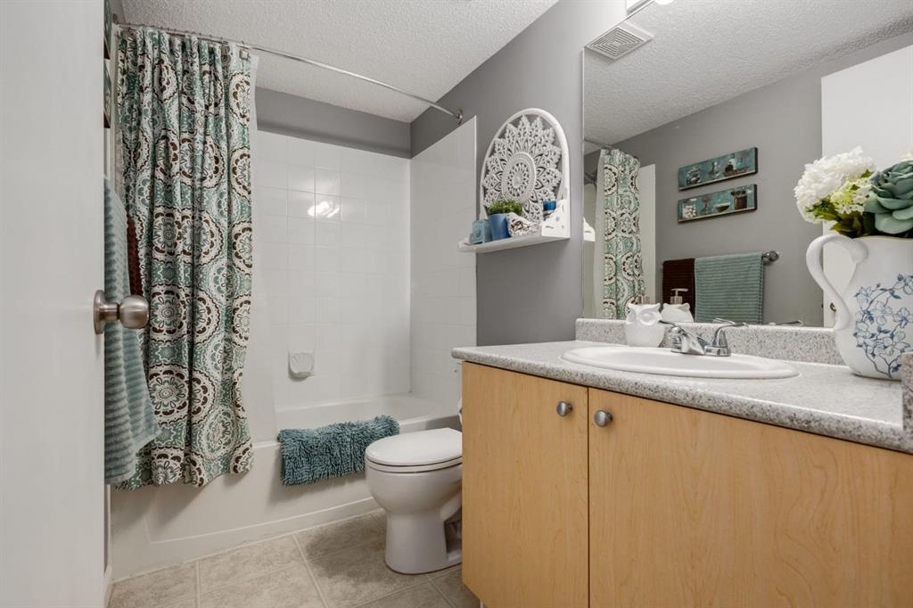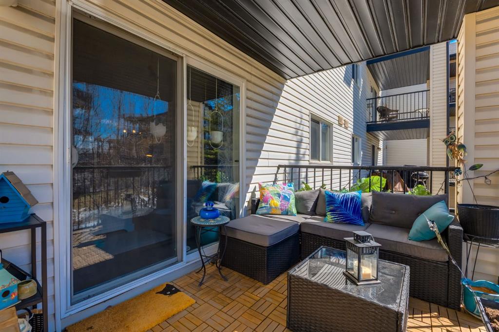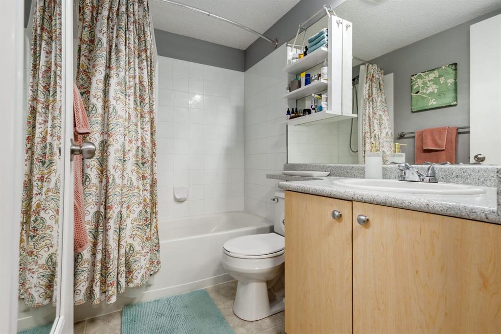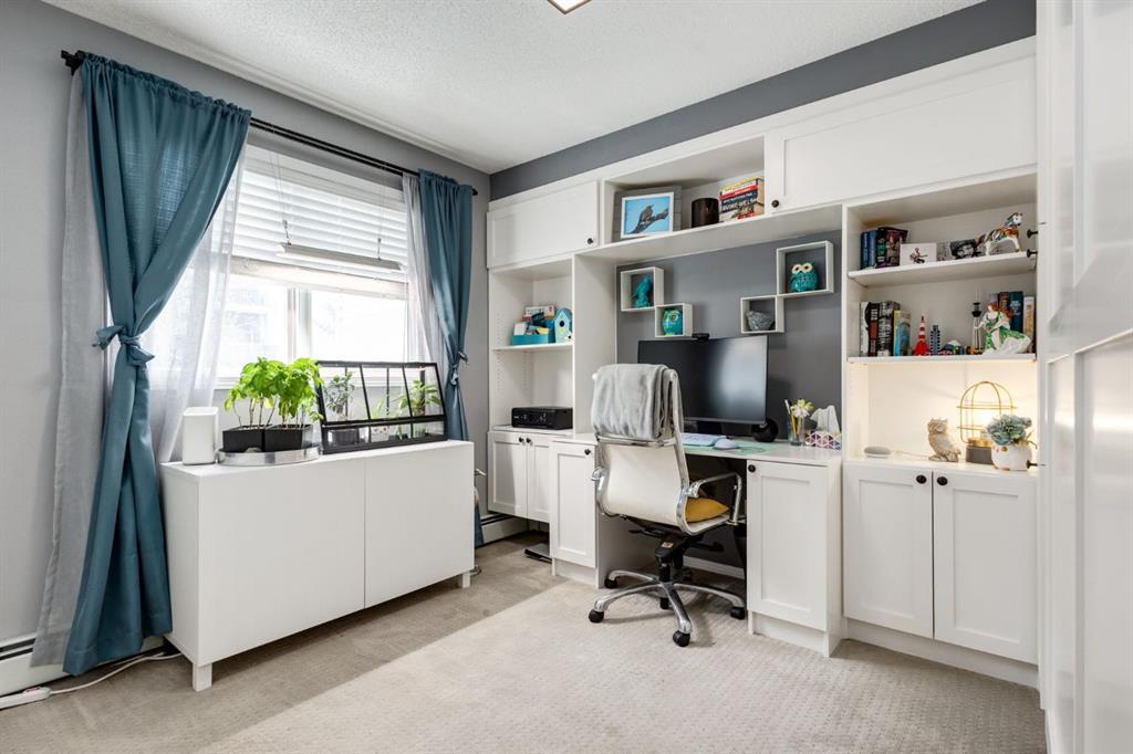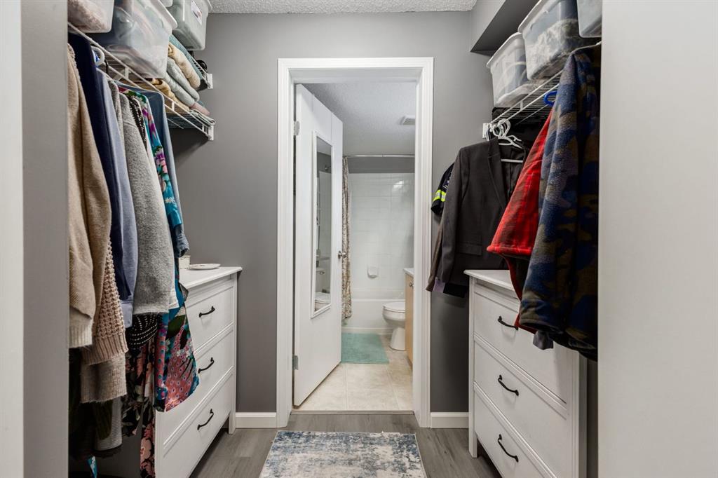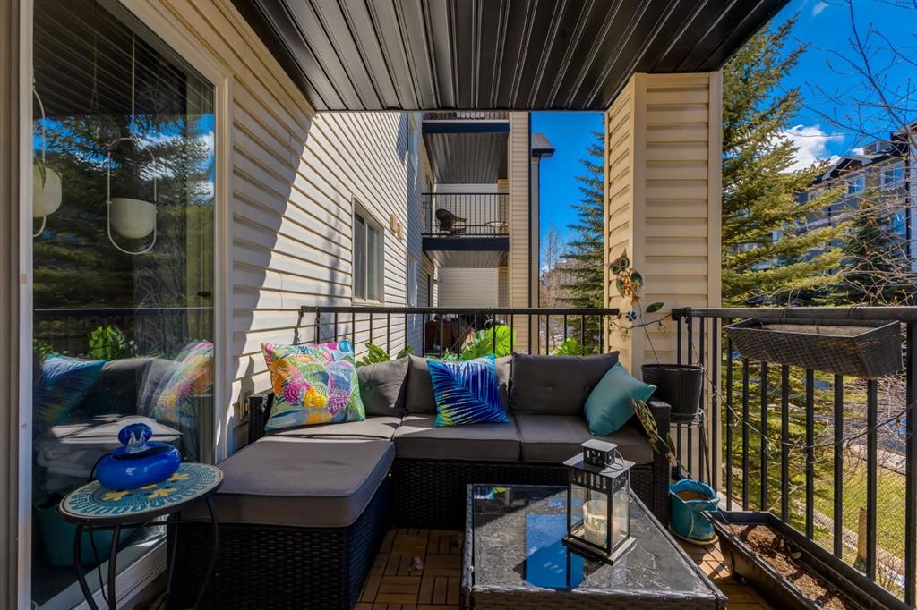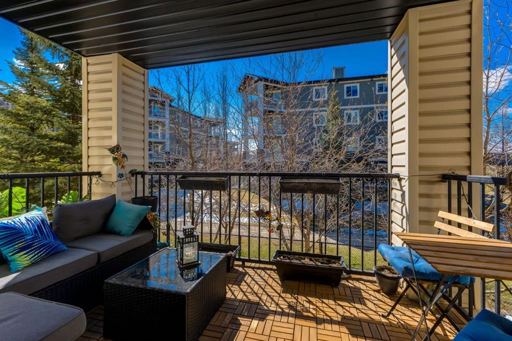 Welcome to this bright & stylish 2-bed, 2 bath condo in Mckenzie Towne that includes a titled underground parking stall & backs onto a lovely treed green space. The kitchen has been totally renovated with custom cabinets, elegant quartz countertops, an undermount sink & a stylish backsplash. You will appreciate the convenience of the pantry & spice pullouts, a Lazy Susan corner cabinet, 2-tiered utensil drawer & garbage & recycle pullout bins. Attractive stainless steel appliances include an electric stove and microwave hood fan that are only a year old. Newer premium vinyl flooring and updated lighting throughout. The roomy primary bedroom has a walk-through closet & 4-pc ensuite. The light-filled second bedroom is carpeted & enjoys the convenience of a custom Murphy bed, a built in desk, bookshelves and storage cabinets. The large in-suite storage room has plenty of room for shelving & a stacked washer (brand new) & dryer. Electricity is included! Close to schools, playgrounds, grocery stores, restaurants, the services at South Trail Crossing and transit. Easy access to 52 street, the Deerfoot & Stoney Trail. Don’t wait to book an appointment, you don’t want to miss this one!