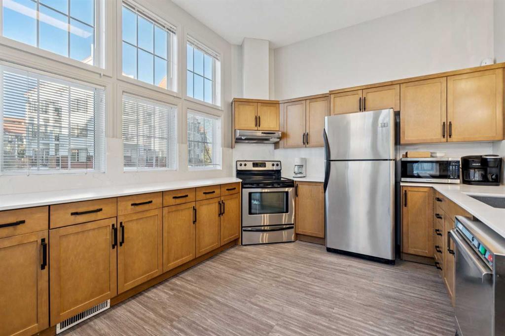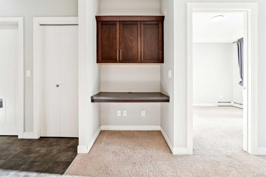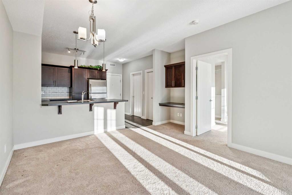 Welcome to Red Haus , located in the very desirable NW community of Royal Oak, situated close to amenities including shopping, restaurants, Rocky Ridge YMCA, C-Train Station, Schools & all within quick access to main thorough fares including Stoney Trail. This one bedroom, third floor, open concept unit looks out to the nicely landscaped courtyard which can be enjoyed from your convenient balcony with BBQ gas line. The kitchen features stainless steel appliances, plenty of cabinet & counter space as well as a functional eating bar & is open to the living room -perfect for entertaining. There is also a practical built-in desk, perfect for at home work station. The spacious bedroom has a good sized walk through closet which is adjacent to the 4 piece bathroom. The washer/dryer unit is off the bathroom. Amenities in this complex are located in the central Club House building & features a fitness centre, meeting room with kitchen & patio area. Included with this condo is a titled underground parking space & storage locker( Room 20-1 in parkade). There is also bike storage & visitor parking. What a great place to call your own in this well-managed complex!