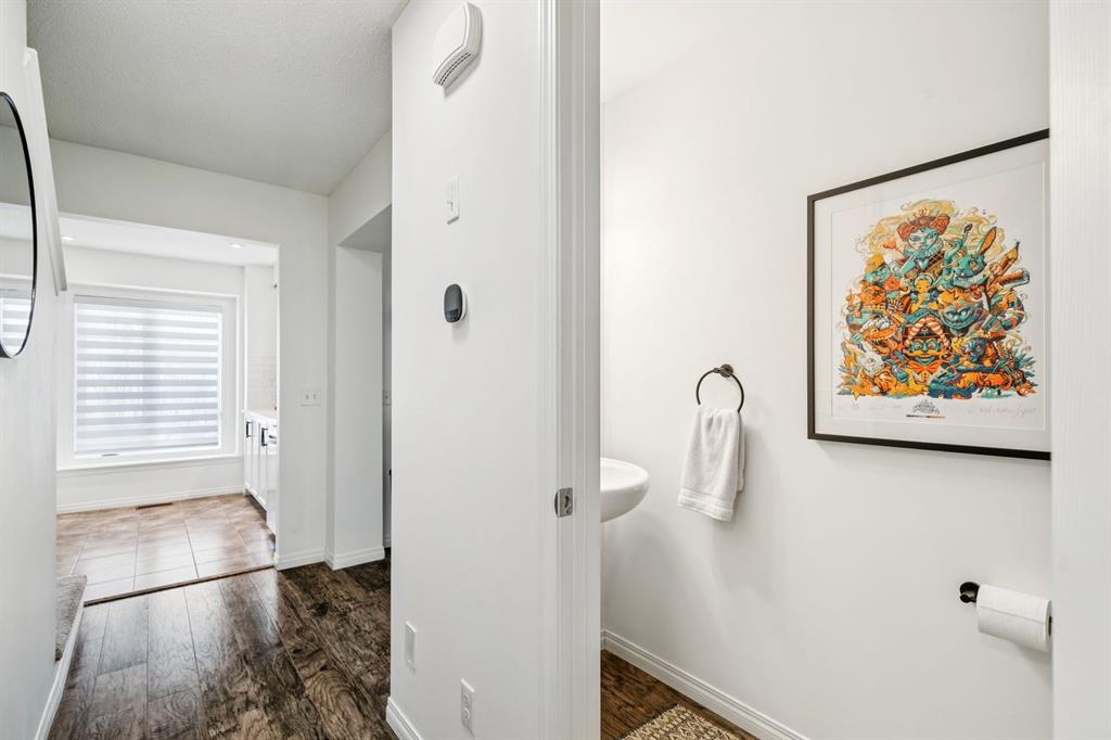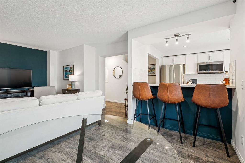 The heart of the home on the second level boasts an open-concept layout defined by a stunning kitchen with white shaker cabinetry, sleek quartz countertops, and stainless steel appliances. Bathed in natural light, the living area is highlighted by a vibrant accent wall, and open floorpan that welcomes you to the generous private balcony perfect for entertaining. Every detail has been modernized, from the upgraded LED ceiling lights and designer bathroom fixtures to the contemporary matte black plumbing fixtures and hardware throughout.