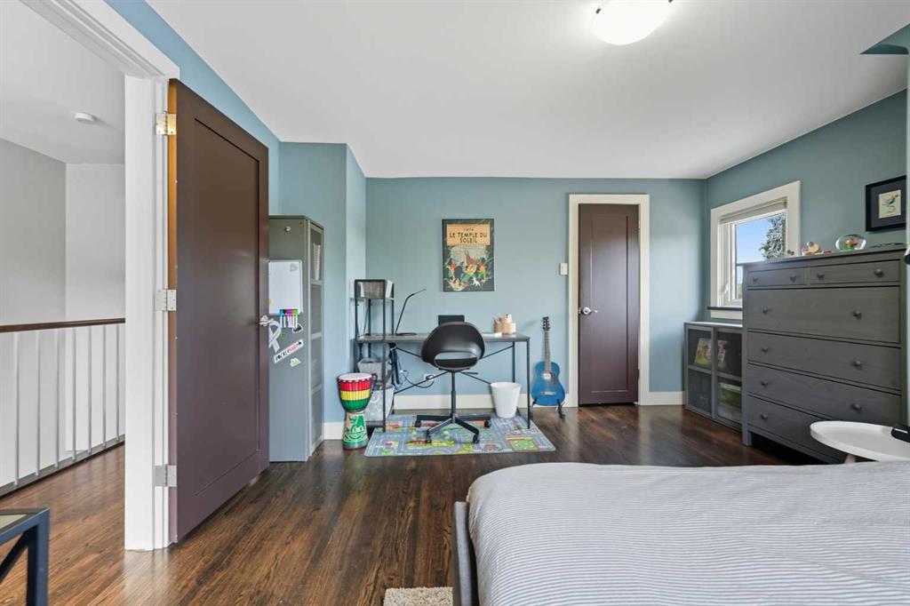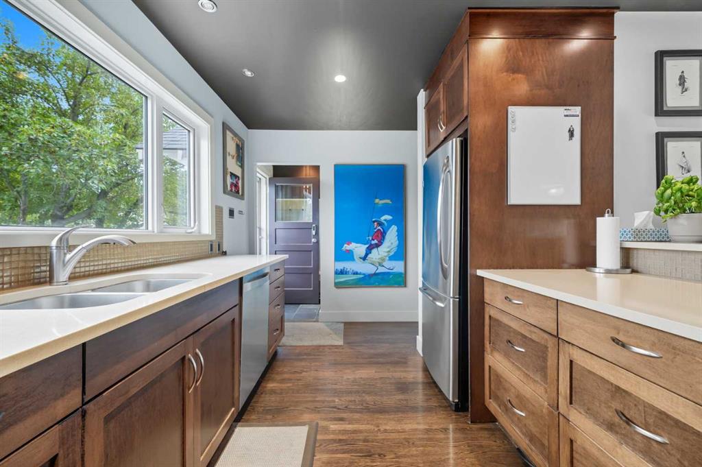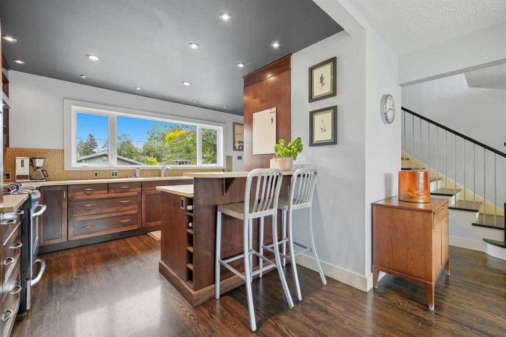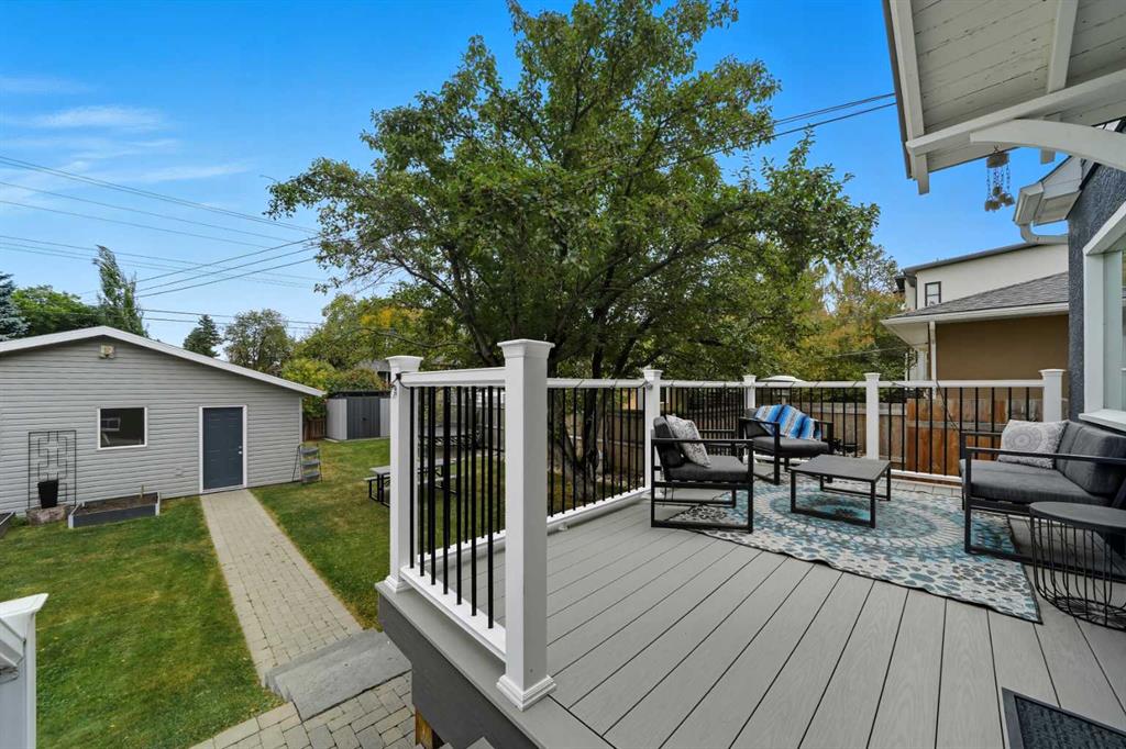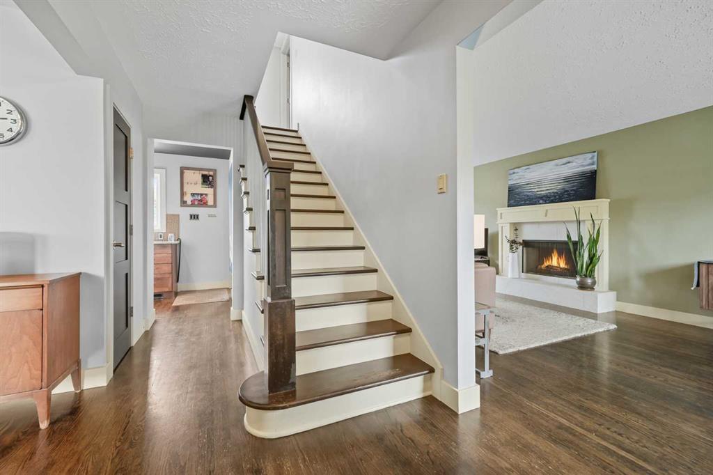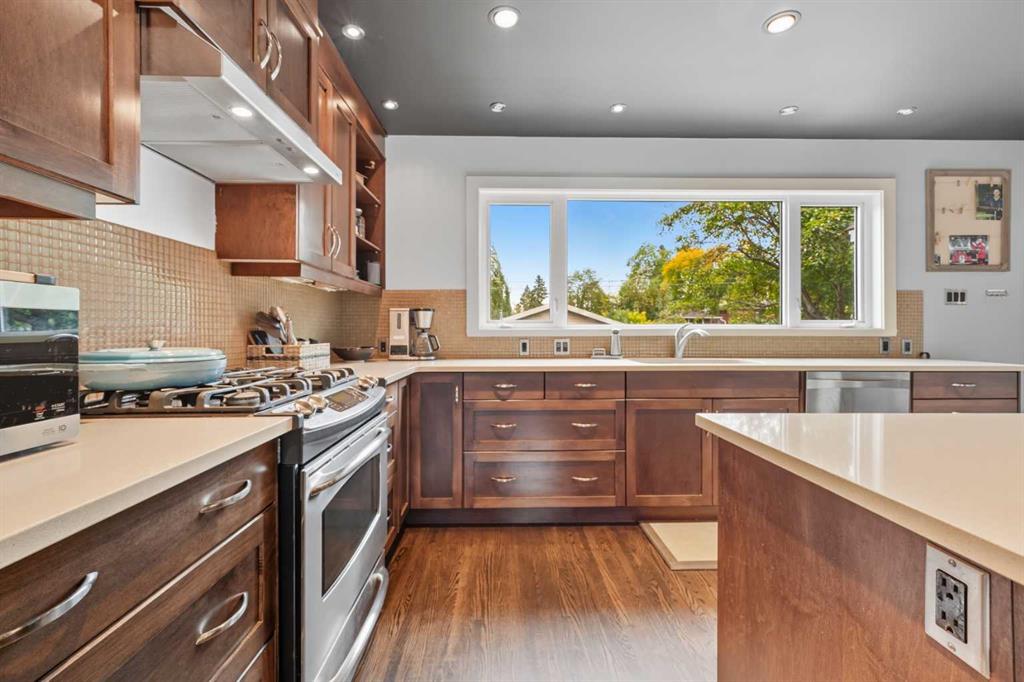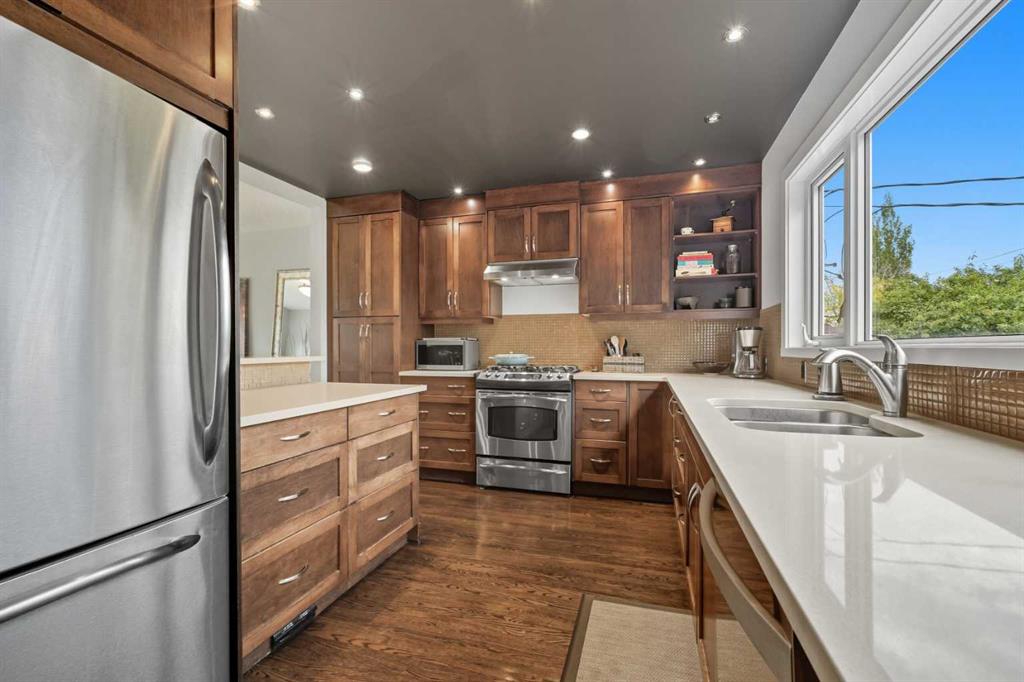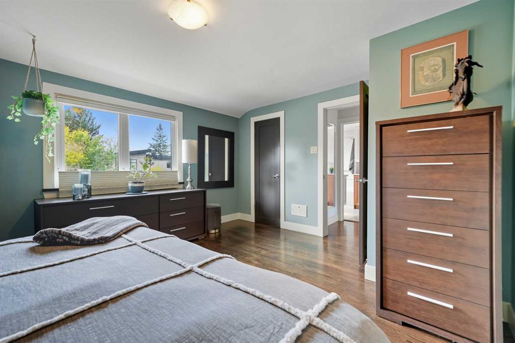Beautifully updated & absolutely charming 3+1 bedroom 1.5 storey home offering over 2200 sq ft of living space & situated on a 50’x125’ lot in the Richmond wedge, which is a lovely enclave of single family homes. The main level presents hardwood floors, showcasing a spacious living room anchored by a wood burning feature fireplace. The bright dining room has ample space to host family & friends. Create culinary delights in the kitchen that’s tastefully finished with quartz counter tops, cozy eating bar, plenty of storage space & stainless steel appliances. The second level hosts 3 bedrooms & an updated 4 piece bath. Basement development includes a large family/recreation room, fourth bedroom & 3 piece bath. Completing the basement is a large storage room & laundry facilities. Other notable features include central air conditioning, roomy west facing front porch & large back yard with deck plus patio with BBQ gas line. Parking is effortless with an oversized double detached garage. The location is incredibly convenient, close to Richmond Green Park, vibrant Marda Loop, schools, shopping, public transit & easy access to Crowchild Trail.