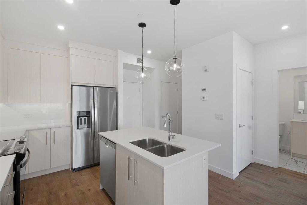 Welcome to this BRAND NEW, never-lived-in 2-bedroom, 2-bathroom condo with a den and 2 TITLED PARKING STALLS, ideally located in the vibrant lake community of Chelsea, Chestermere. Built by TRUMAN, this modern home offers a seamless blend of contemporary design, smart functionality, and everyday comfort—perfect for first-time buyers, downsizers, or investors.