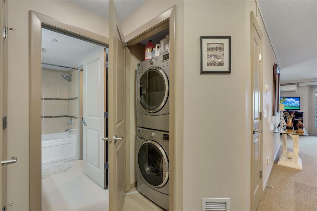 This beautifully maintained condo offers a stylish kitchen with striking dark cabinetry, newer rare real quartzite stone countertops, tile flooring, breakfast bar, and stainless steel appliances including an OTR microwave/hood fan, water and ice dispenser in fridge and smoothtop stove. The spacious primary bedroom features a walk through closet leading to a practical 4 piece bathroom. A bright and versatile den off the living room provides the perfect space for a home office, study, or guest area ideal for a Murphy bed/desk combo when flexibility is needed for friends or family. Additional highlights include in-suite laundry with washer and dryer, in-floor heating, air conditioning, and a gas BBQ hookup on the balcony. You’ll also appreciate the titled underground parking stall and a large enclosed storage unit. You will really enjoy two beautiful open air courtyards, secure underground parking, daily on site maintenance, and an inviting lobby with multiple seating areas! The location is exceptional steps to walking paths along the pond and transit, and just moments from McKenzie Towne High Street, offering shops, grocery stores, medical offices, and charming cafés. With easy access to major roadways, direct transit to downtown, proximity to South Health Campus, Seton, and the extensive amenities of 130th Avenue, the convenience of this location is unmatched. This pet friendly building (with board approval) is well managed with a healthy financials giving you peace of mind and long term value. Whether commuting downtown, enjoying nearby parks and pathways, or planning weekend escapes, this home delivers the perfect blend of comfort, convenience, and low maintenance living. A must to see. Schedule your private viewing!! Call today.