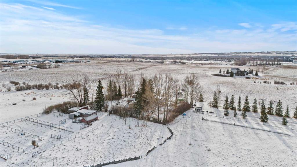 This is a rare, high-exposure 11.19-acre development site at the absolute north gateway of Okotoks, (Directly North of Wedderburn) positioned just east of Highway 2A along the paved sub-road at the first set of lights entering town. Elevated topography delivers commanding, unobstructed mountain views—an increasingly scarce and premium feature—while mature spruce trees create a private, park-like setting. Offered strictly as land value with the residence included at no cost, this parcel is surrounded by established and expanding infrastructure including schools, commercial uses, golf courses, and residential neighbourhoods, all within walking distance, and supported by a new signalized intersection for safe, efficient access. With visibility, access, views, and growth already in place, this irreplaceable gateway parcel offers immediate and long-term upside for commercial or mixed-use development.