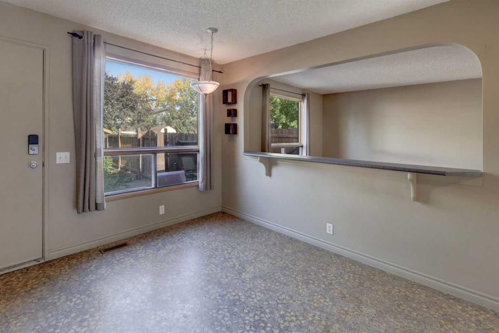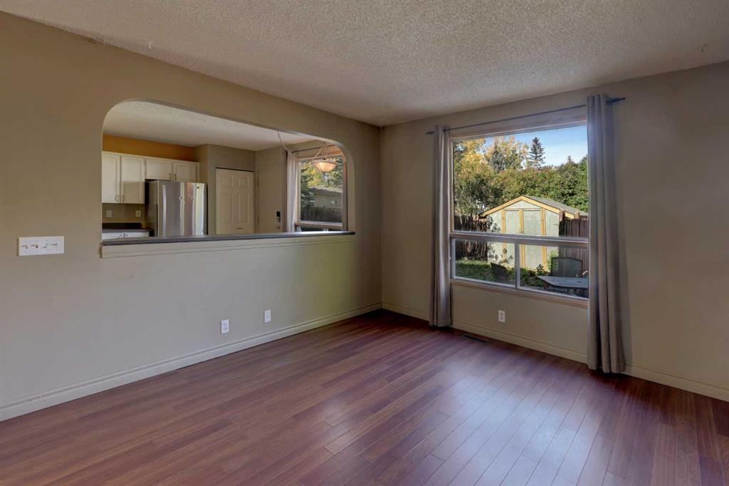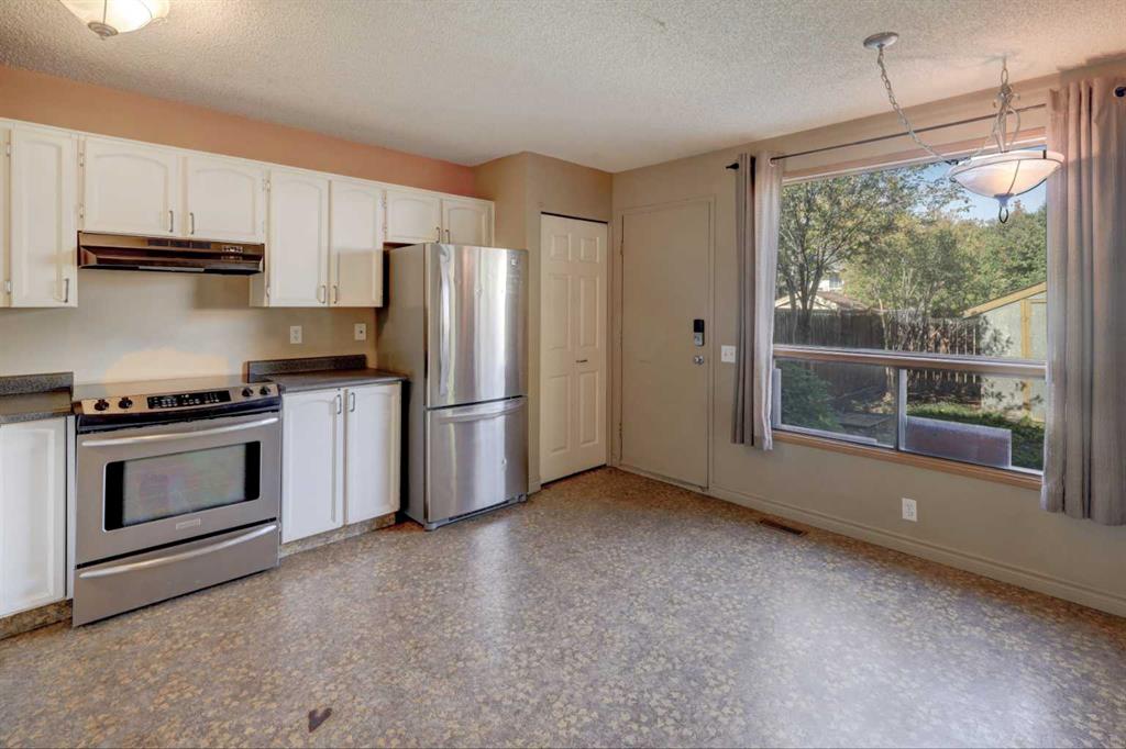 Inside, you’ll find a spacious main floor featuring a large kitchen and dining area with convenient access to the backyard. A pass-through opening to the living room allows for easy conversation while preparing meals. A 2-piece bathroom is also located near the front entrance for added convenience.