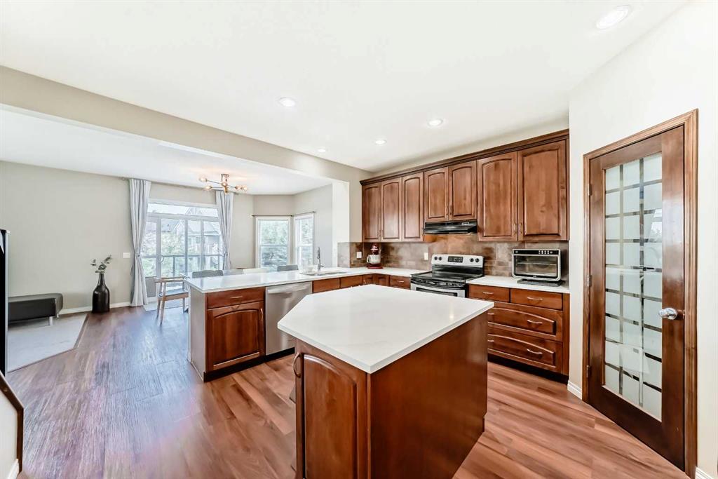 Step inside to a main floor designed for both style and function. Formal living and dining rooms set the stage for entertaining, while a sun-drenched breakfast nook overlooks the sparkling pond. The spacious kitchen boasts quartz countertops (2021), abundant cabinetry, and luxury vinyl plank flooring (2021) flowing throughout the main areas. Step onto the deck to savor morning coffee or unwind as the sun sets over the tranquil water.